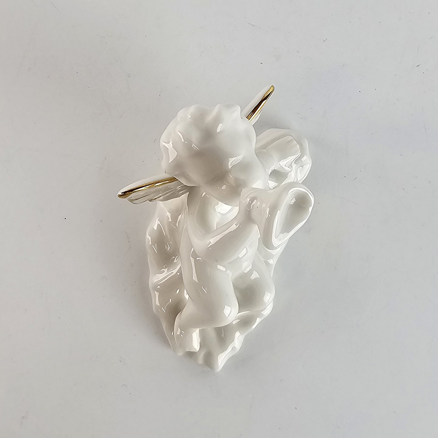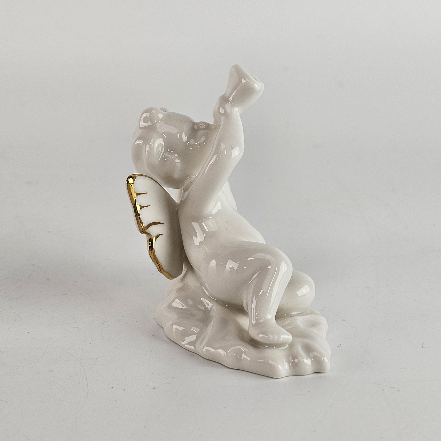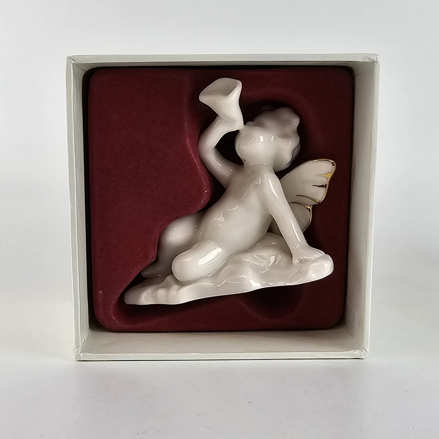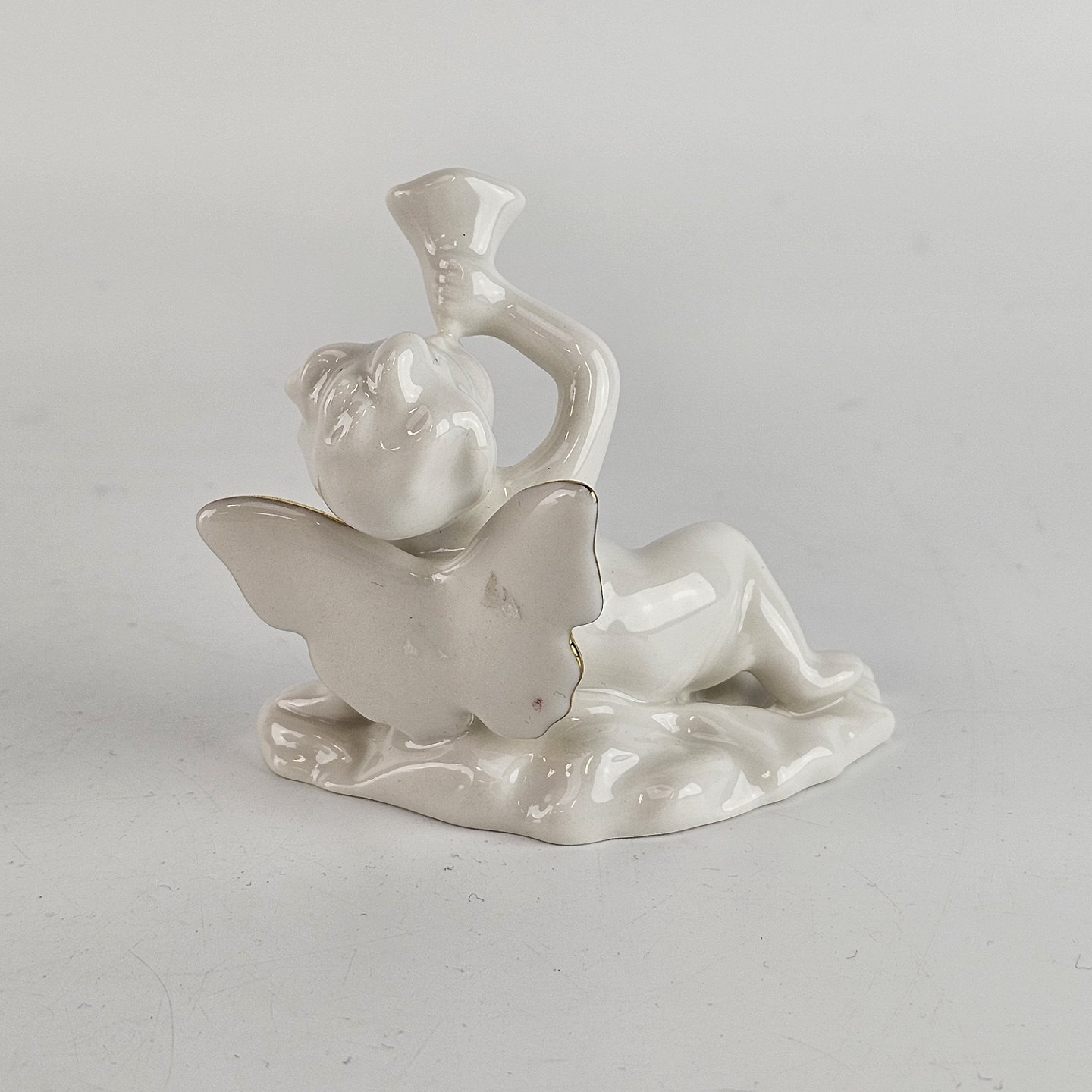 Kongelig lille hvid porcelænsengel med horn fra Royal Copenhagen. Guldkant på vingerne.