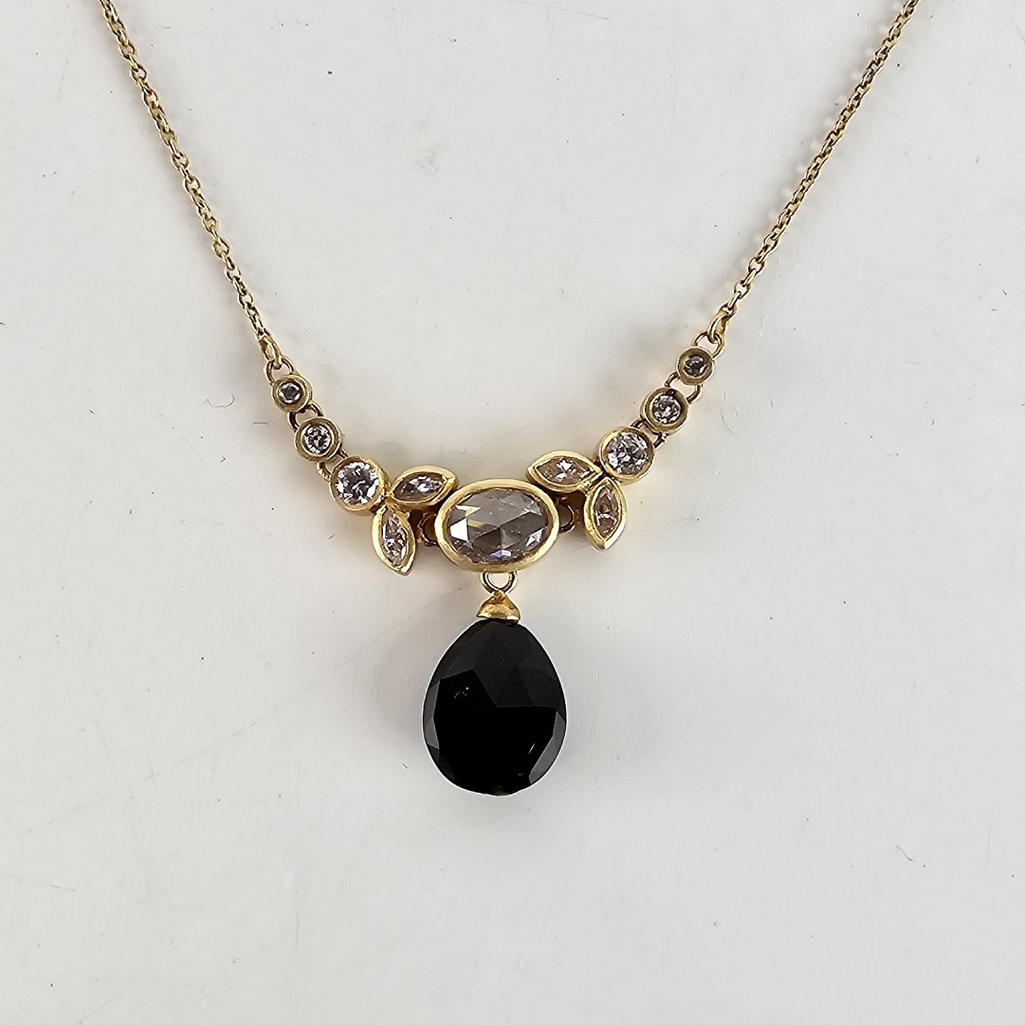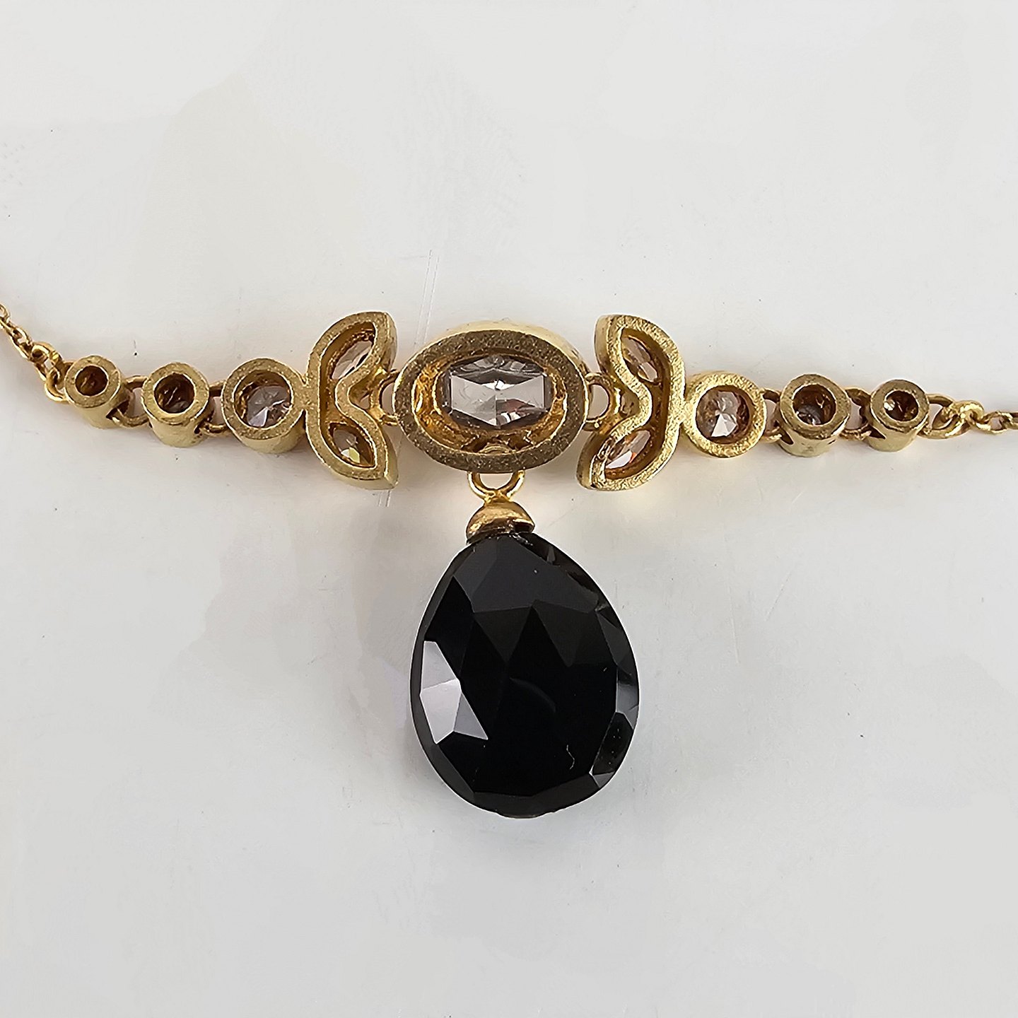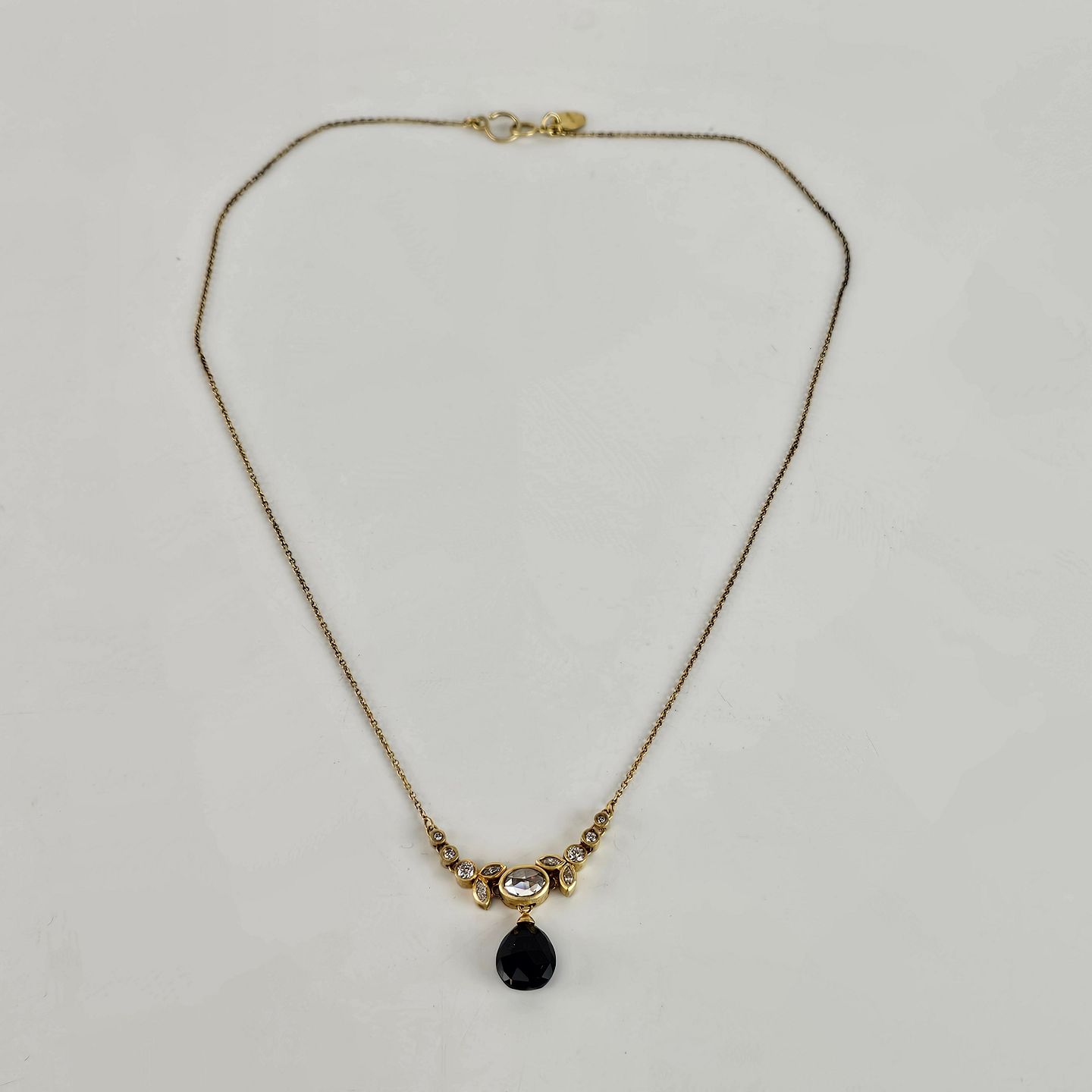 Halskæde i sterling sølv med sort glas vedhæng og klare sten.