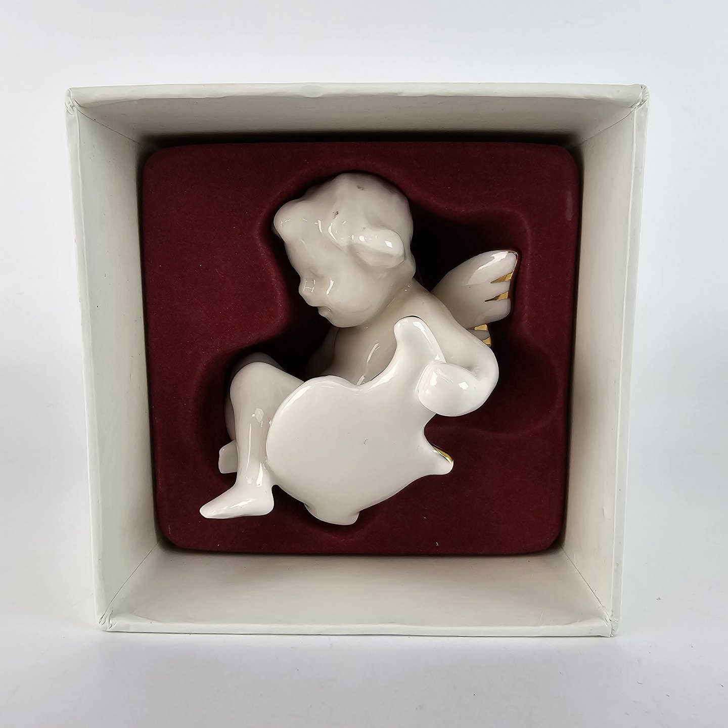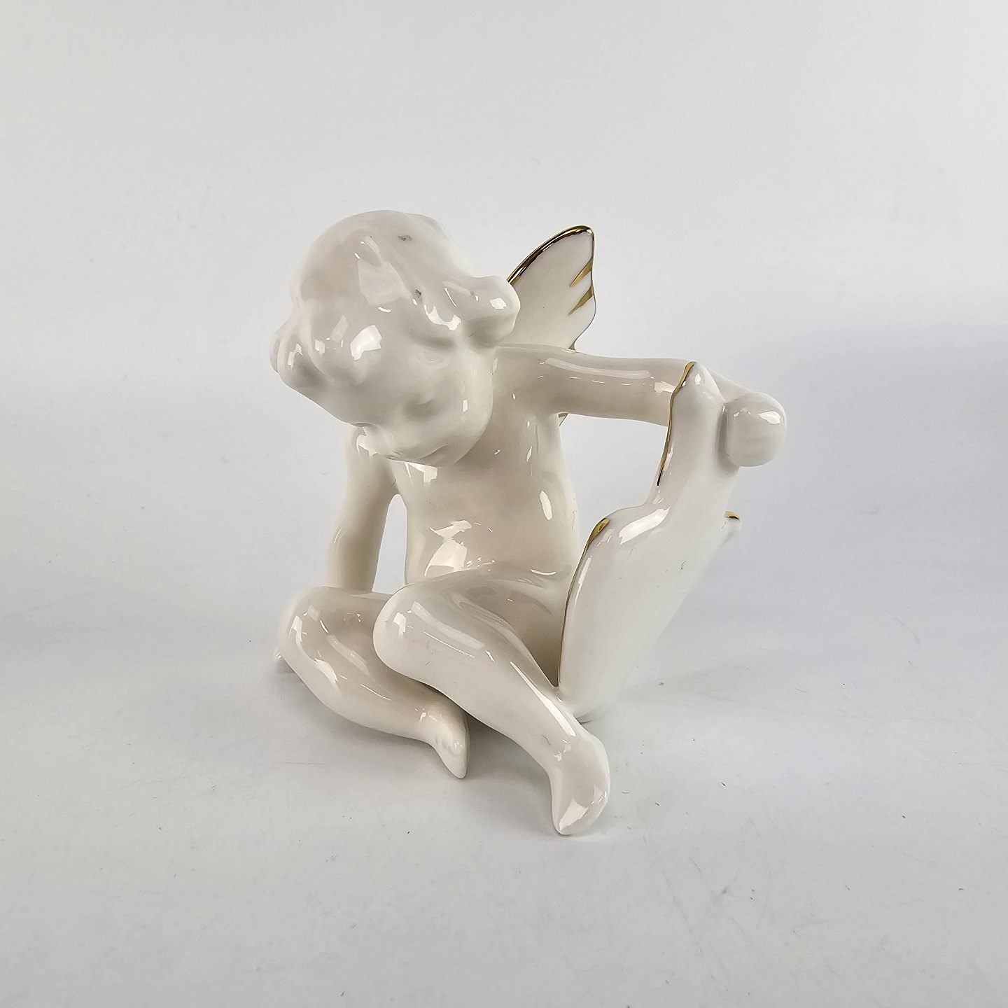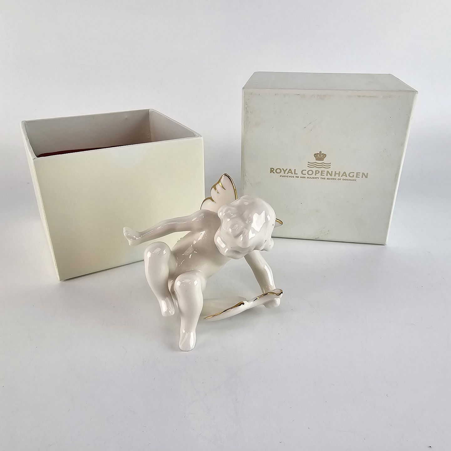 Kongelig lille hvid porcelænsengel med horn fra Royal Copenhagen. Guld detaljer.