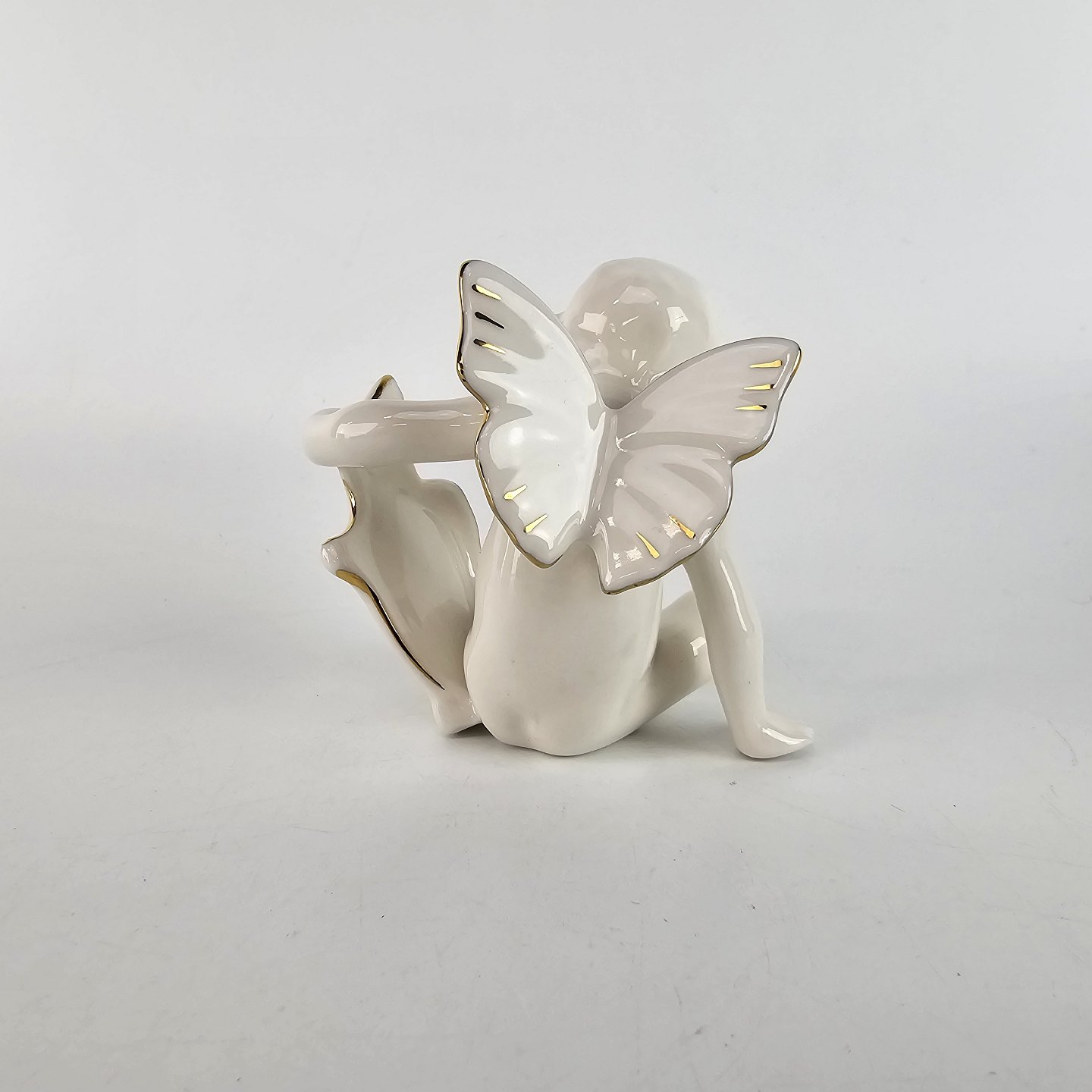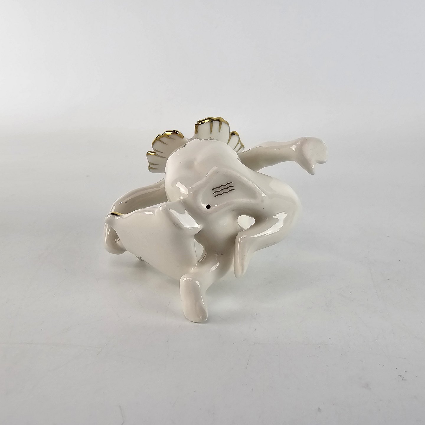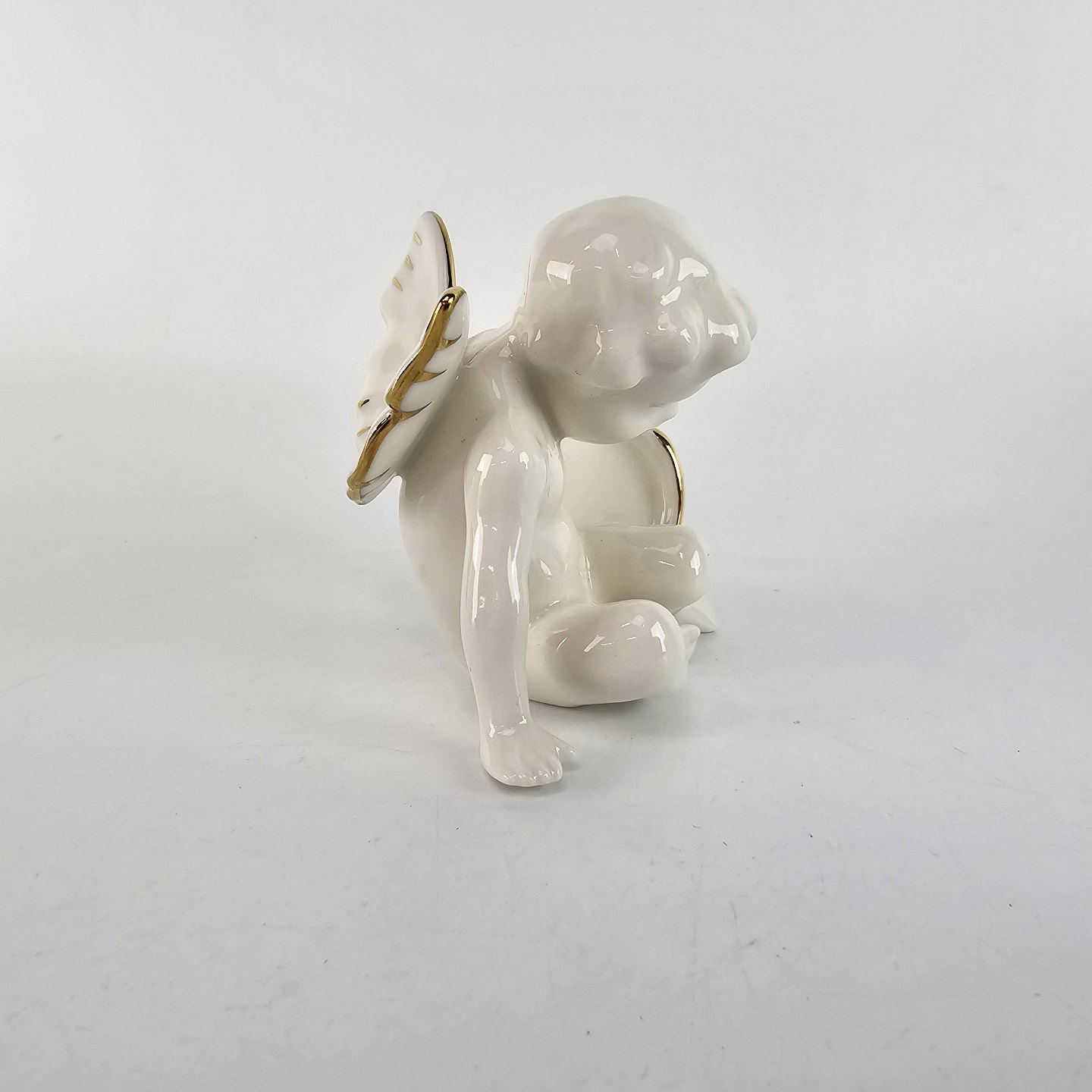 Kongelig lille hvid porcelænsengel med horn fra Royal Copenhagen. Guld detaljer.