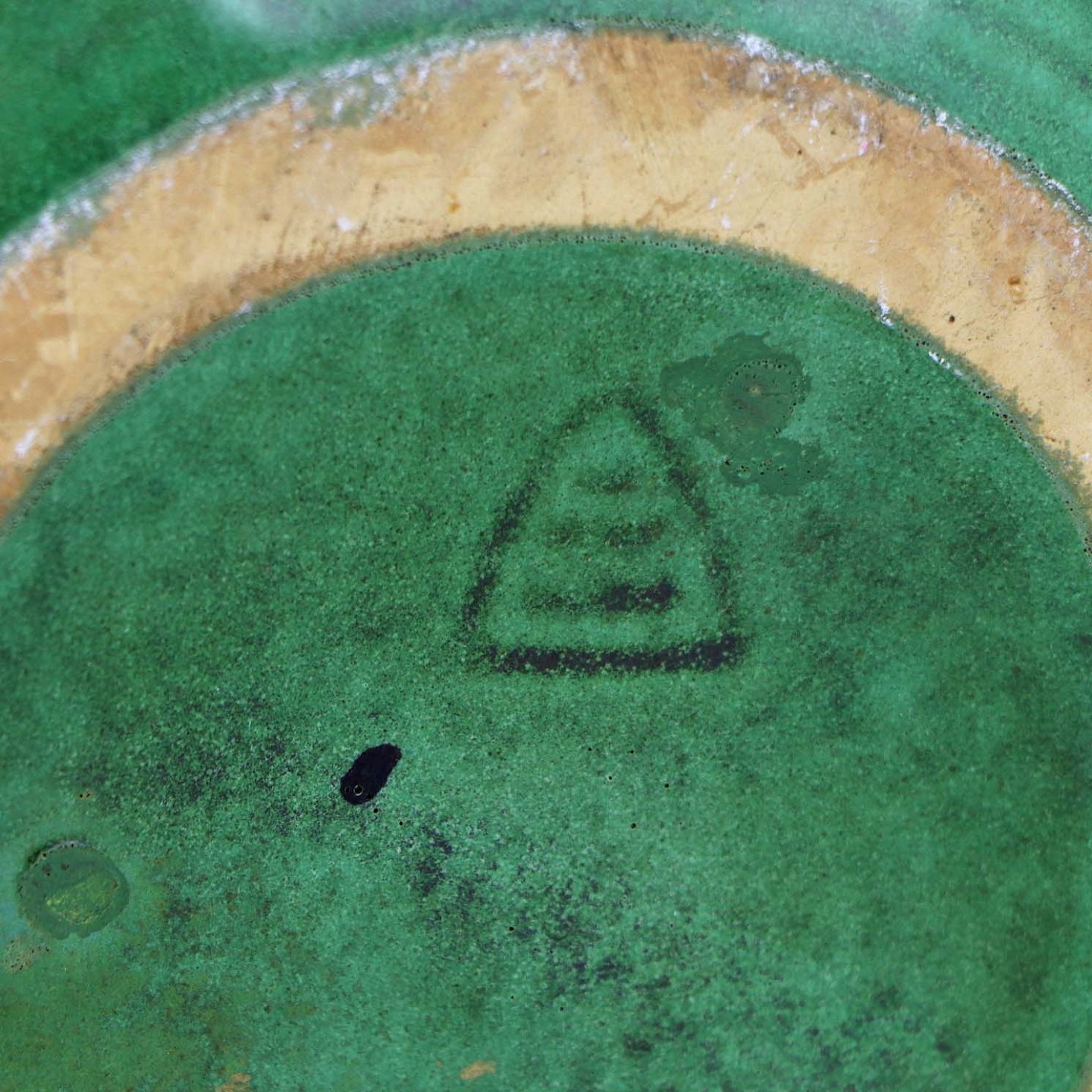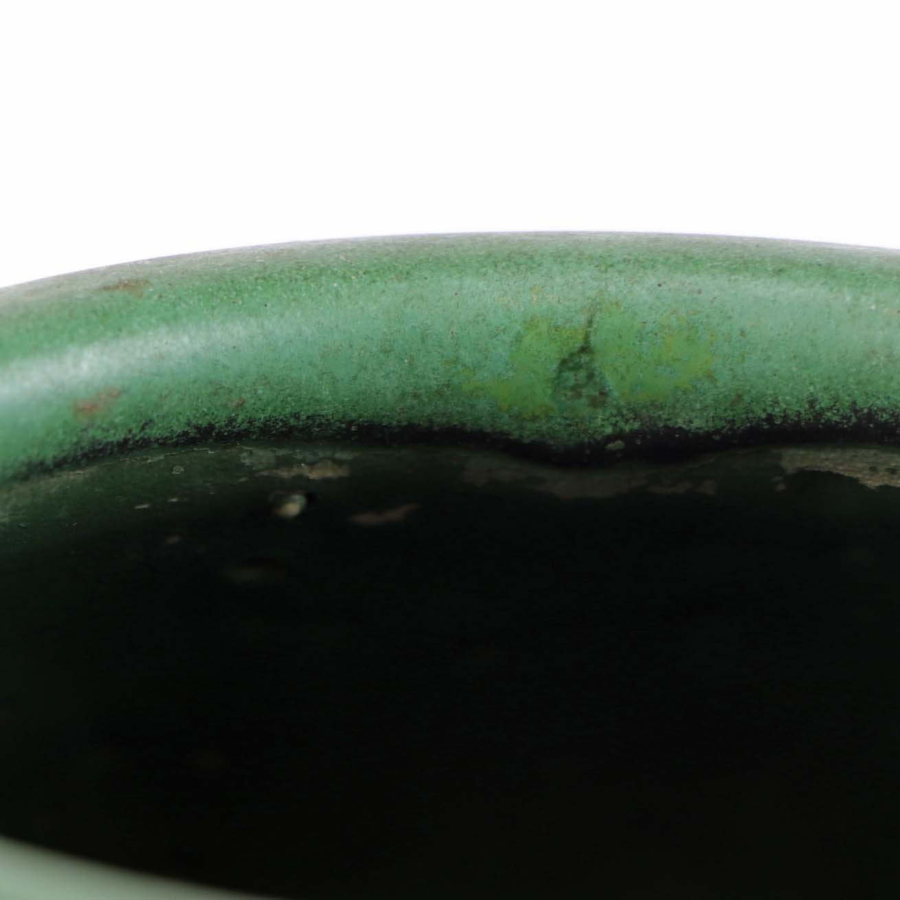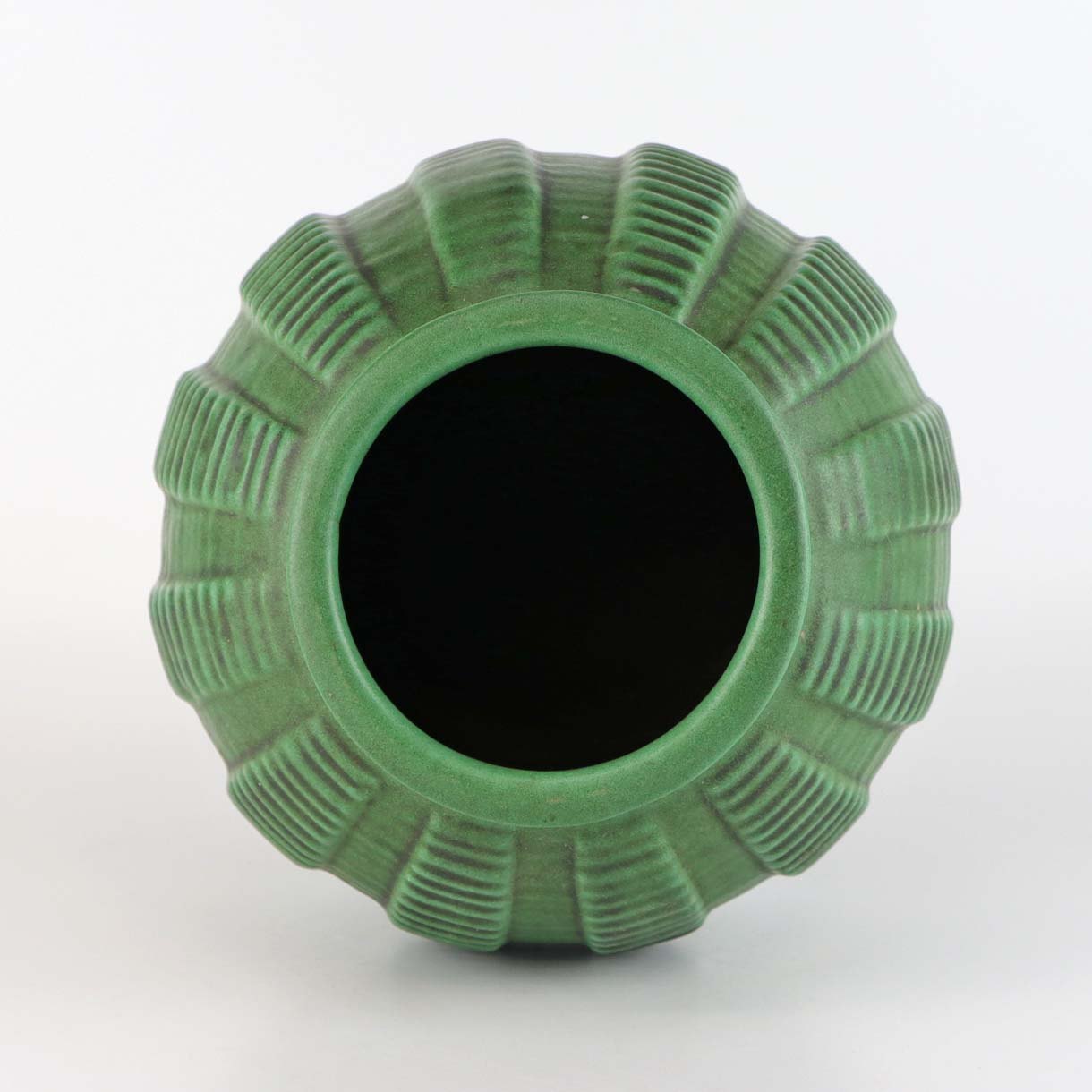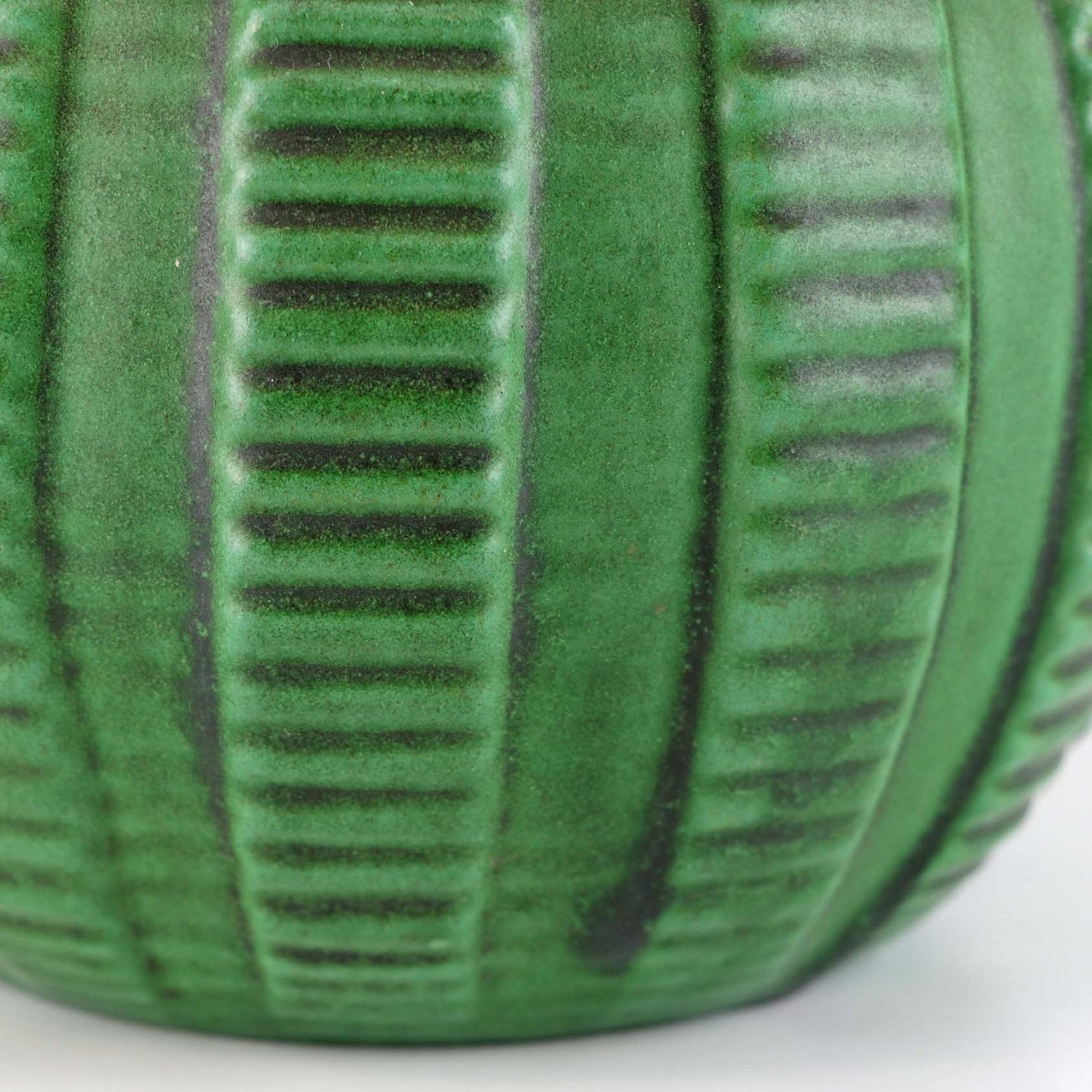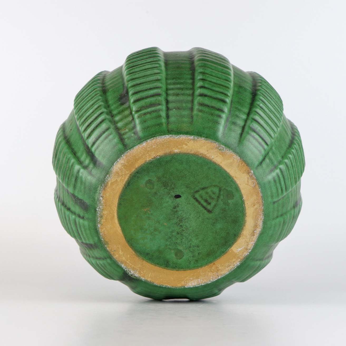 Kuglevase i grøn glaseret keramik med rillet mønster