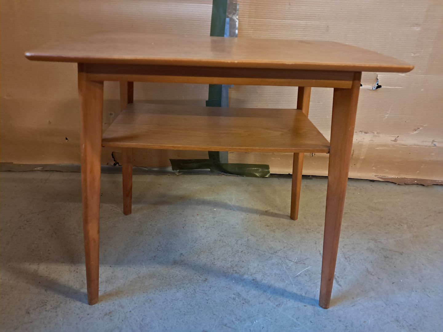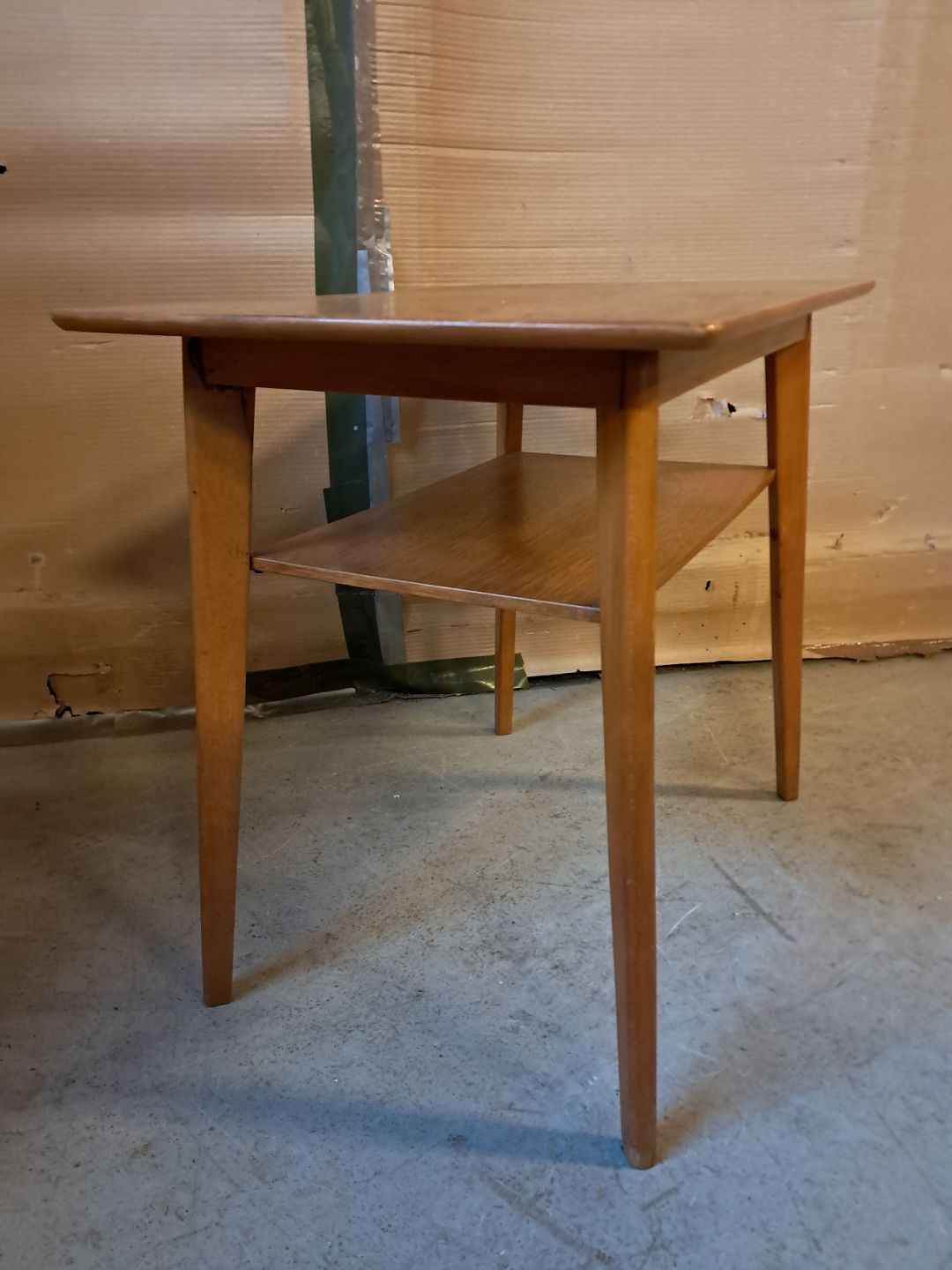 Lille bord i massivt bøgetræ og fineret egetræ, fra 1960erne.