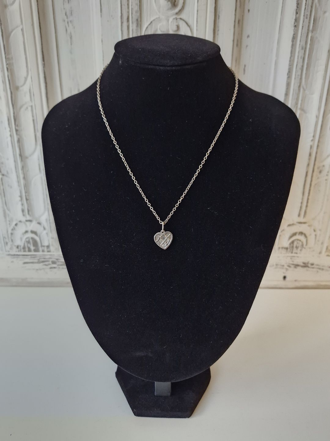 Georg Jensen halskæde i sterlingsølv med vedhæng i form af "Tro, håb & kærlighed"