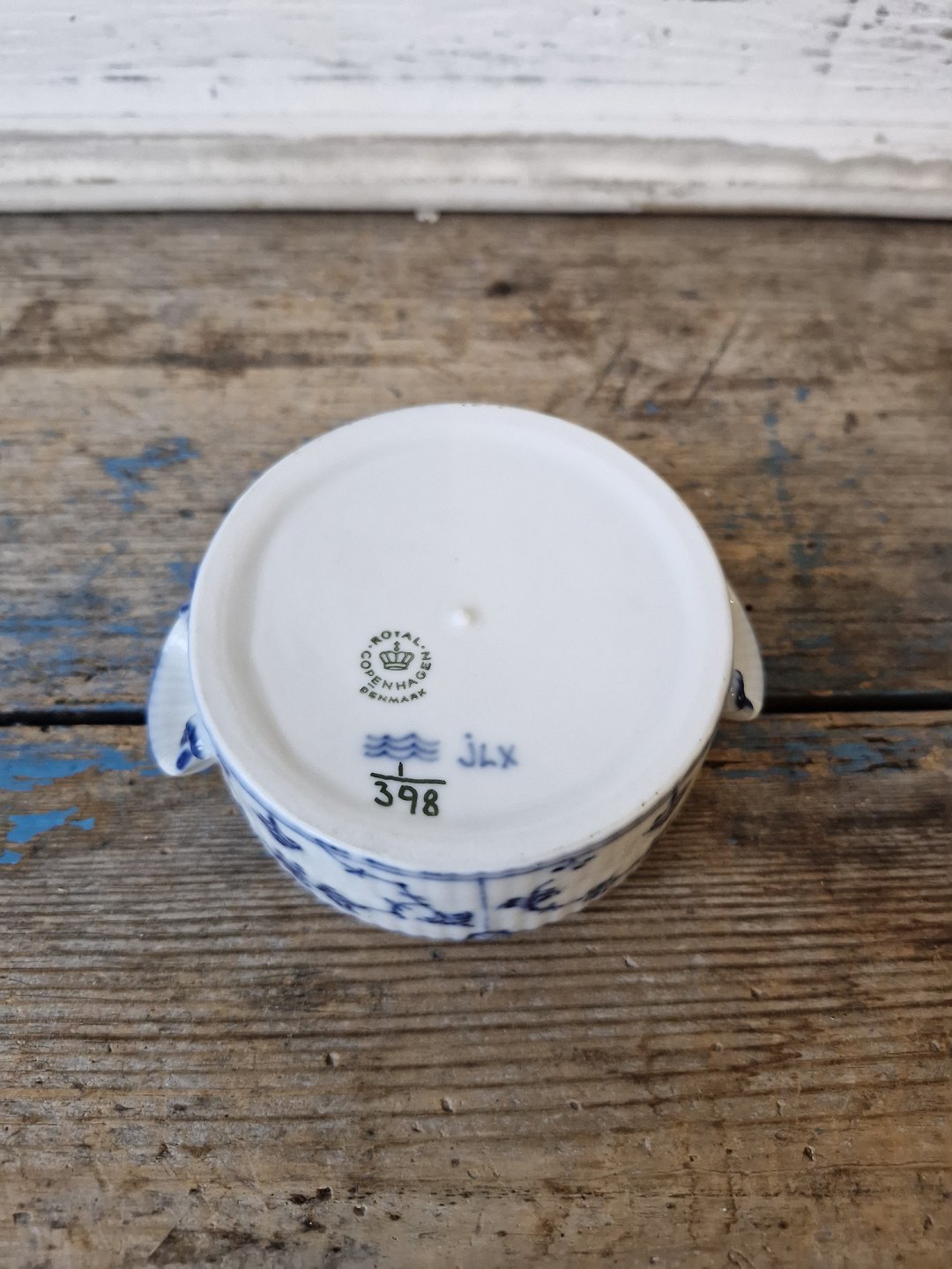 Royal Copenhagen Musselmalet riflet smørskål uden låg no. 398