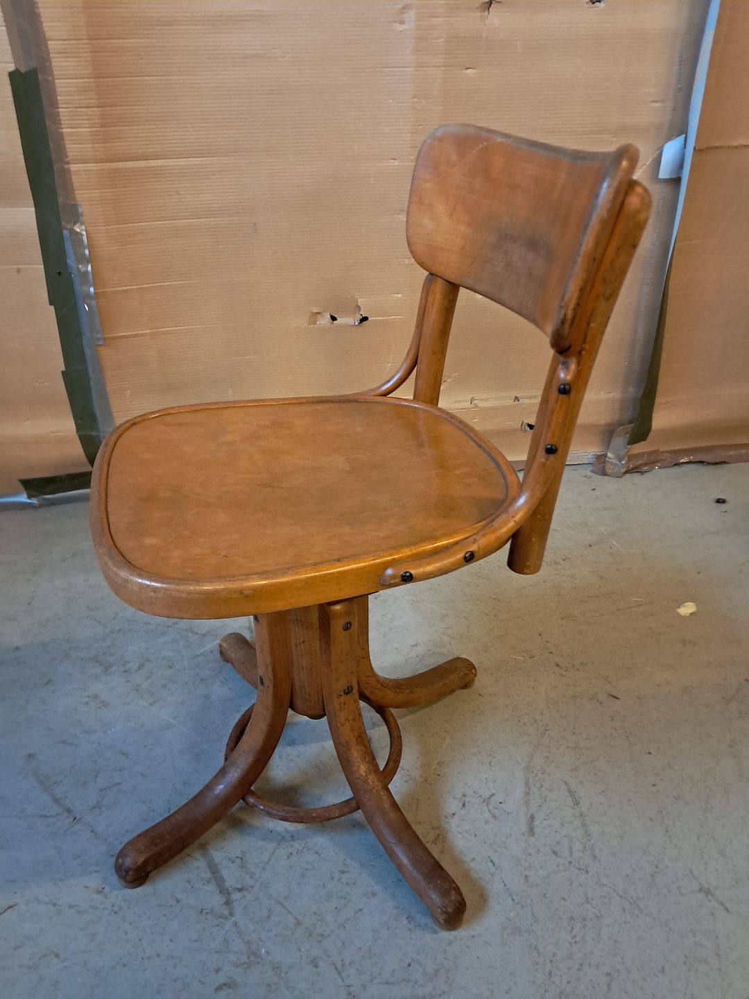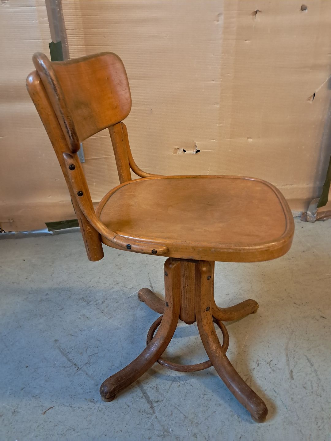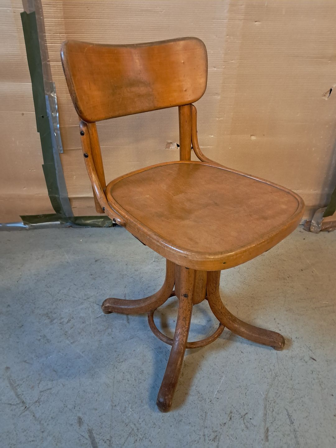 Kontorstol i massivt og fineret bøgetræ, fra 1930erne.