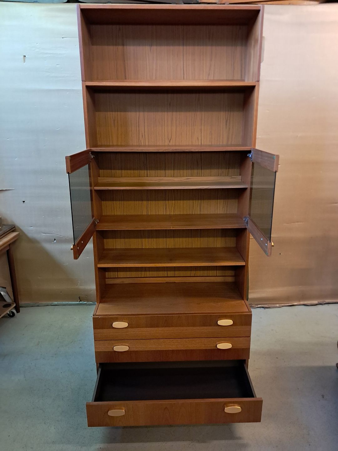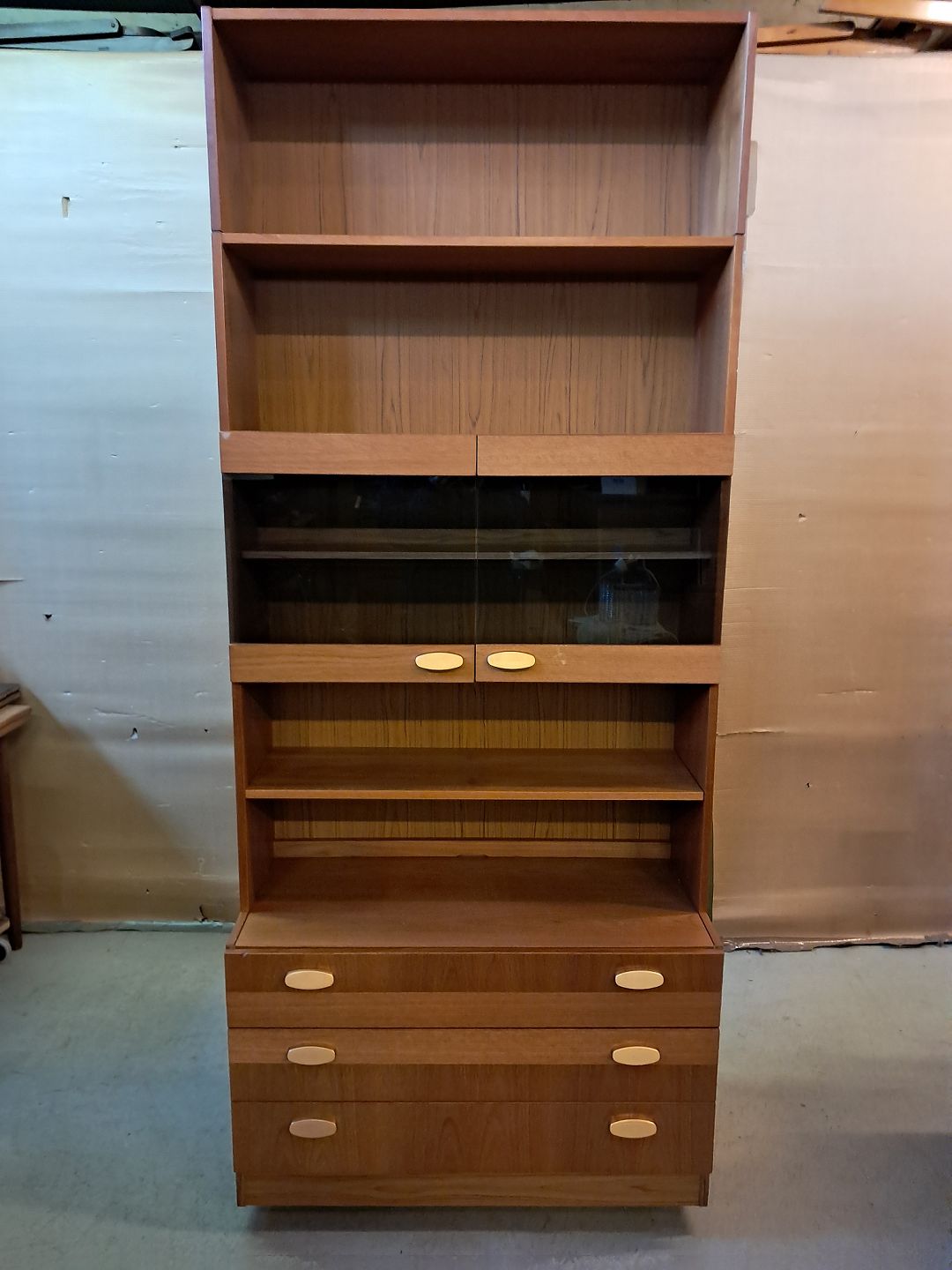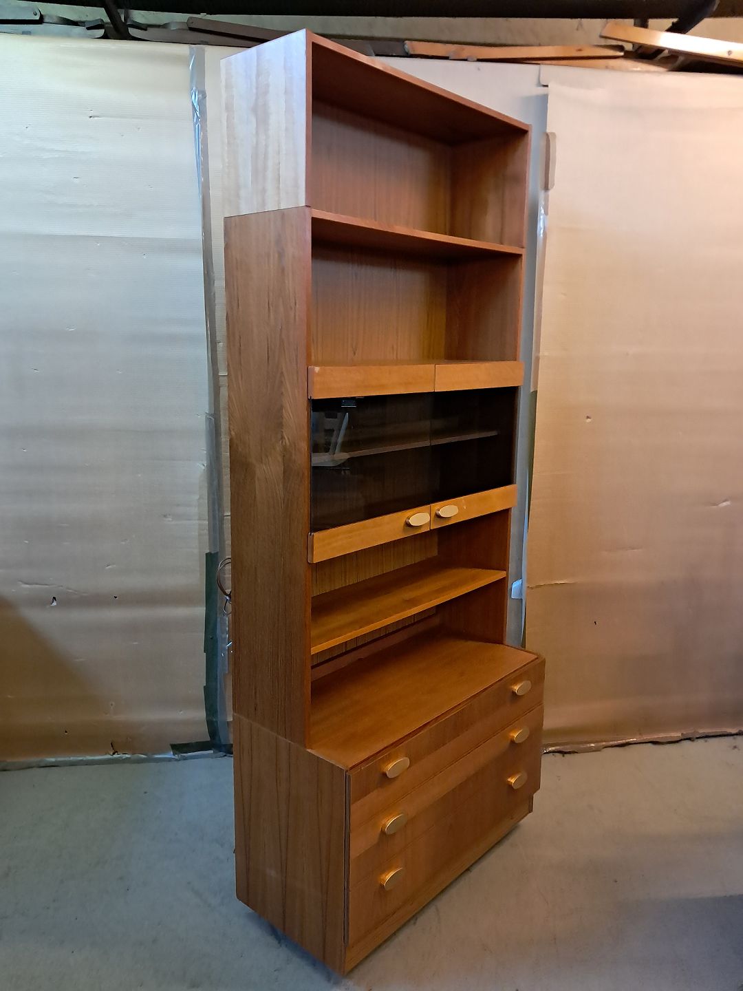 Reolsektion i fineret teaktræ, fra 1970erne.