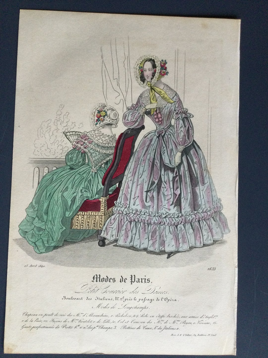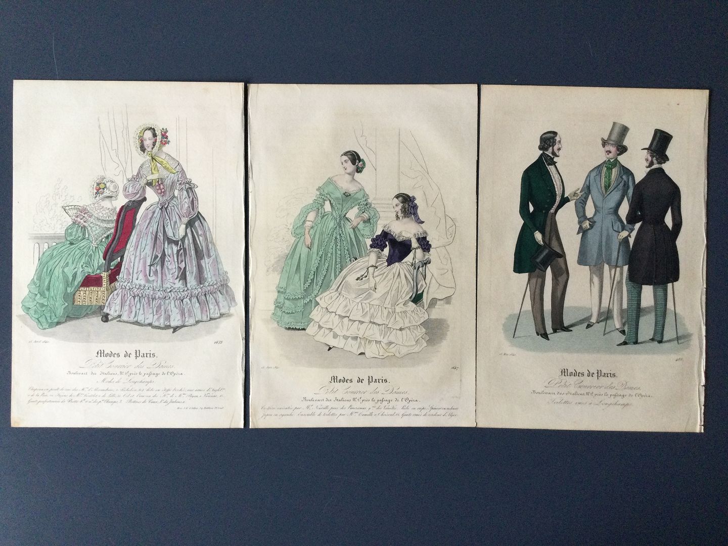 3 håndkolorerede raderinger 1840 - Modes de Paris