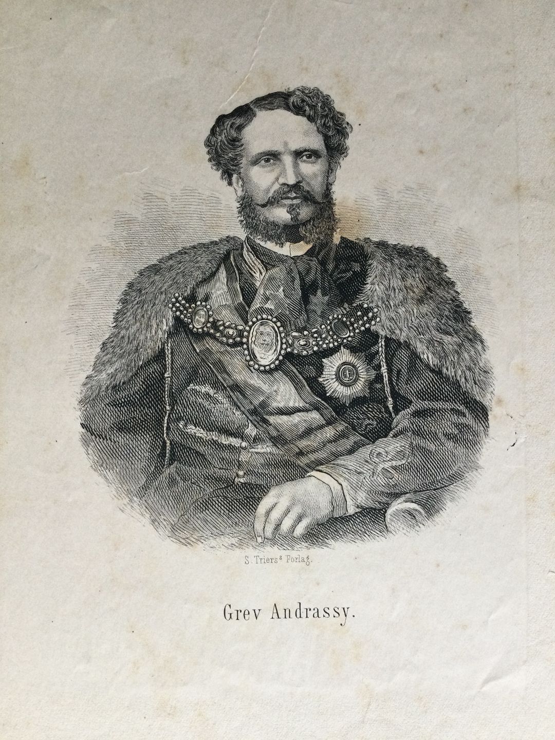 Litografi - Portræt af den ungarske statsmand og greve Andrássy.