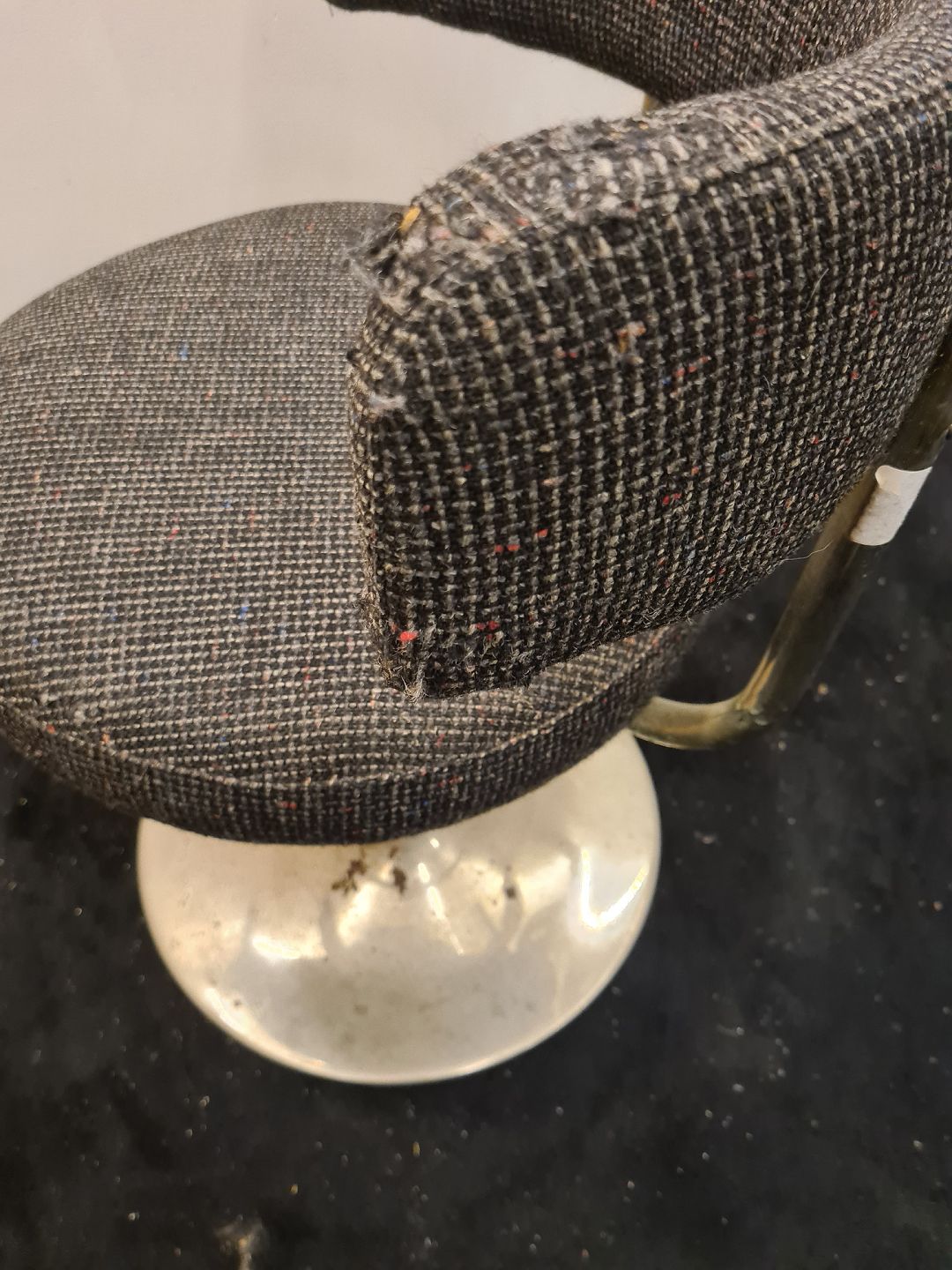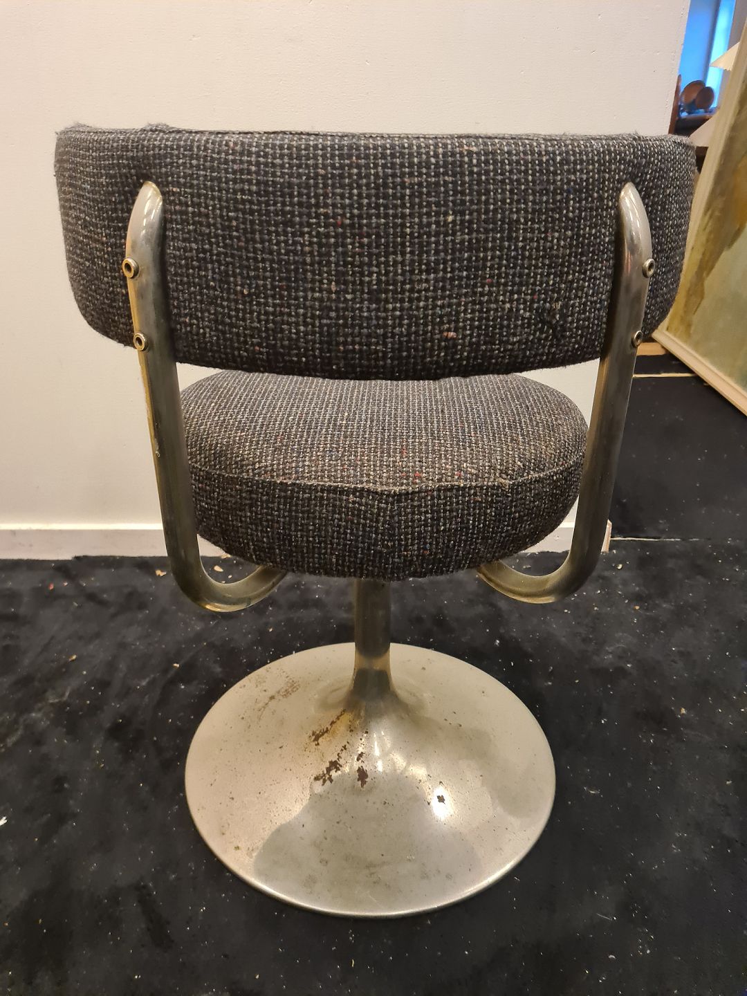 Drejestol m. base i metal samt polstret med uldstof.