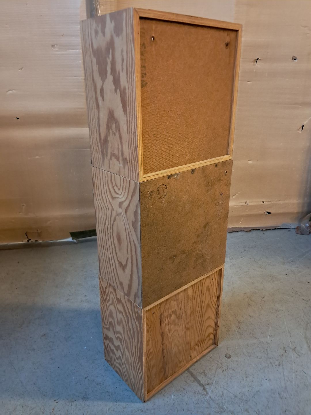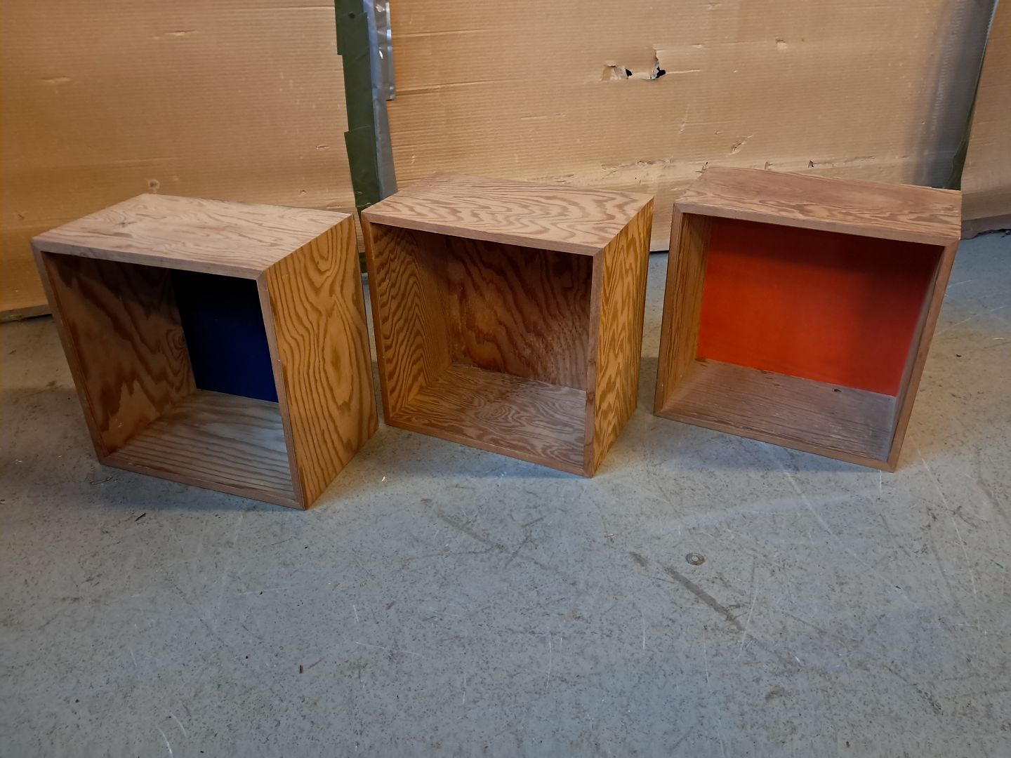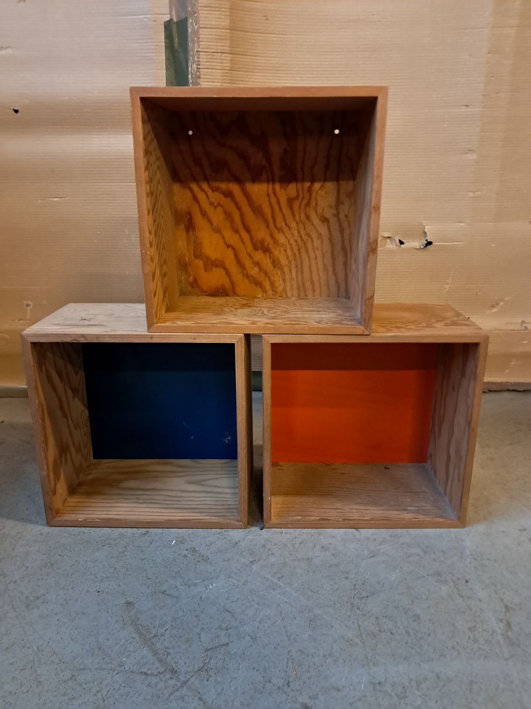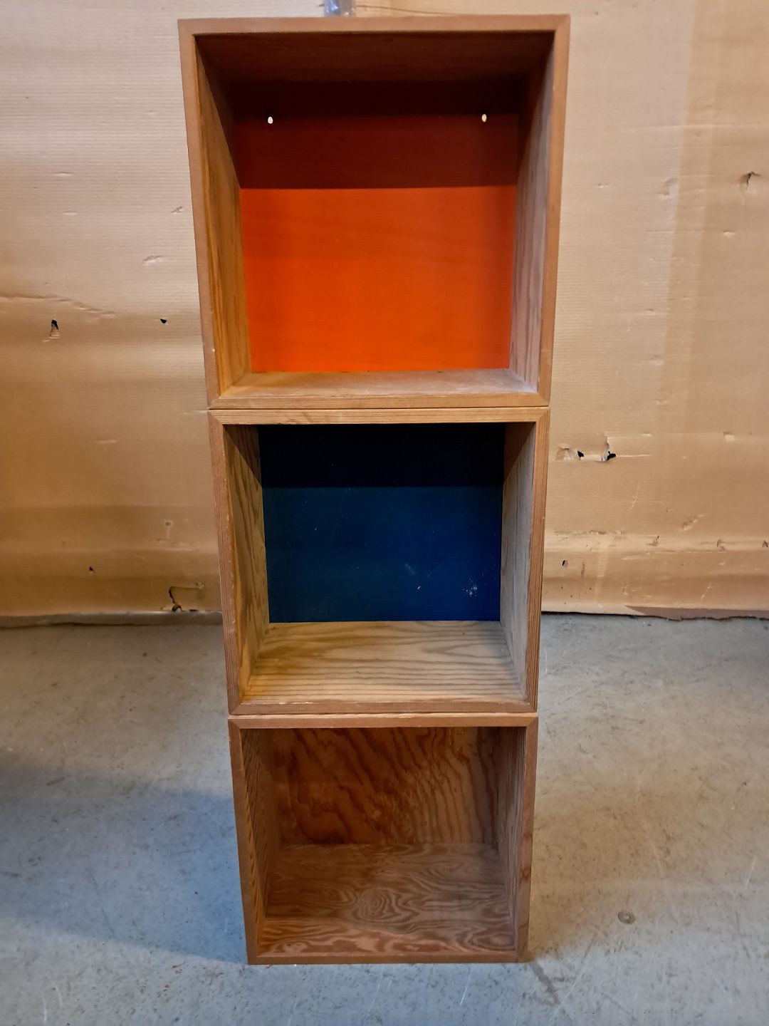 3 Uens bogkasser i krydsfiner, fra 1990erne.