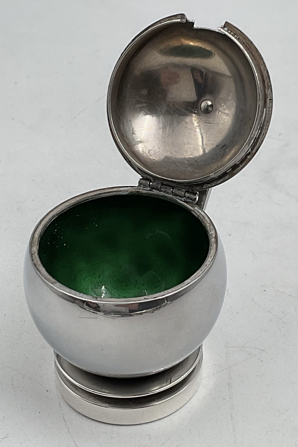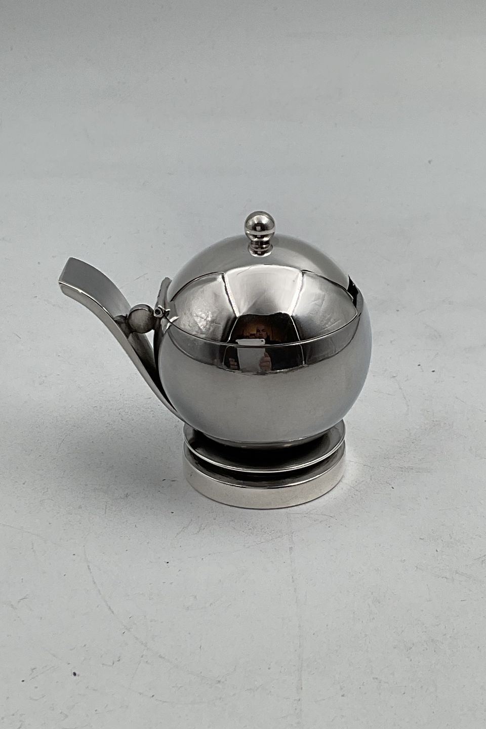 Georg Jensen Pyramide Sterling Sølv Sennepskrukke med Grøn emalje No 632