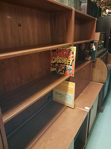 2 Reolsektioner i fineret teaktræ, fra 1960erne.
