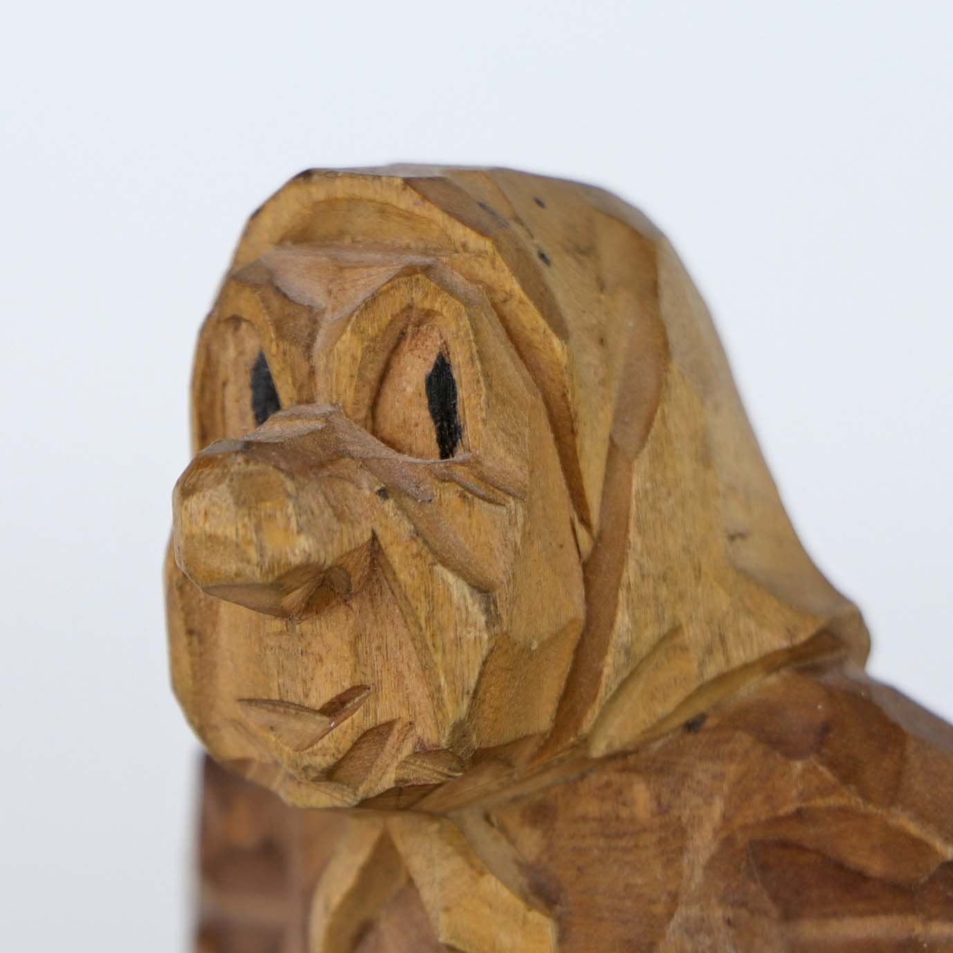 Et sæt håndsnittet figurer i træ med motiv af ældre mand og ældre kvinde