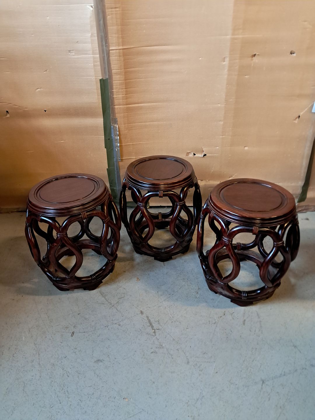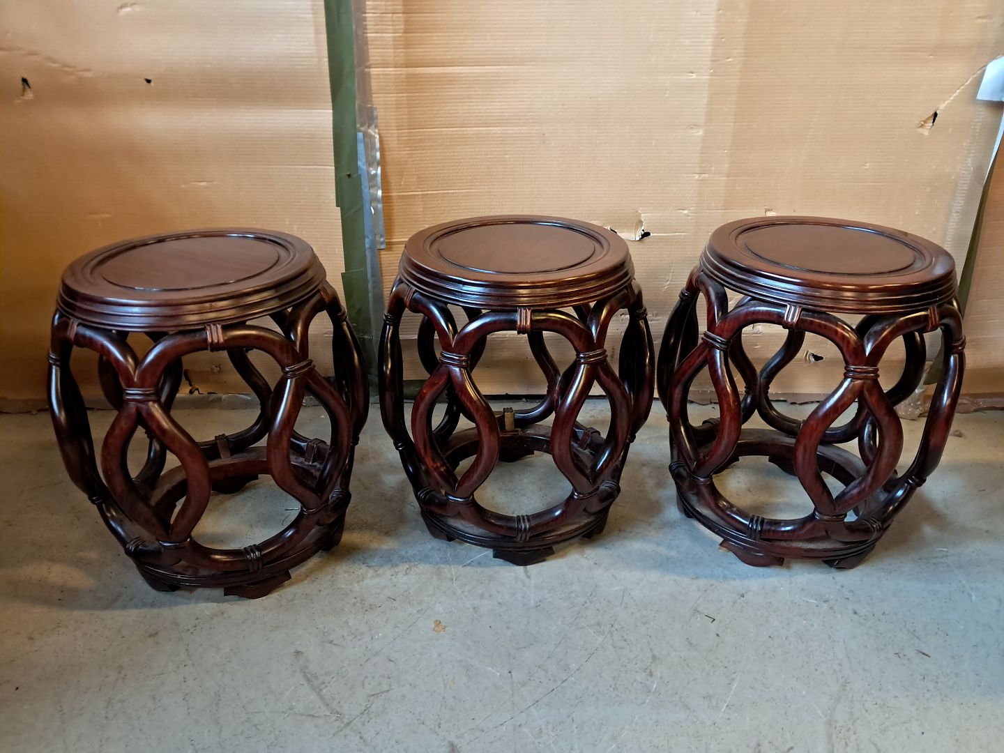 3 Kinesiske skamler i massivt mahogni, fra 1990erne.