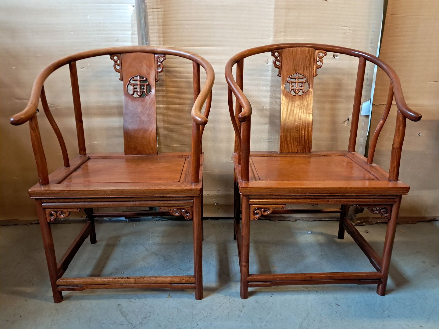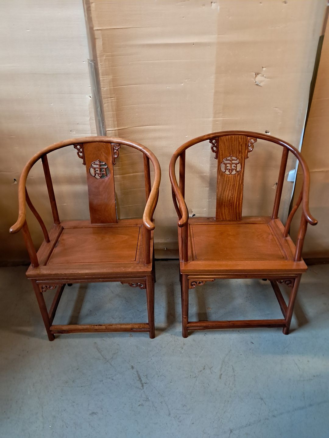 2 Kinesiske stole i massivt træ, fra 1990erne.