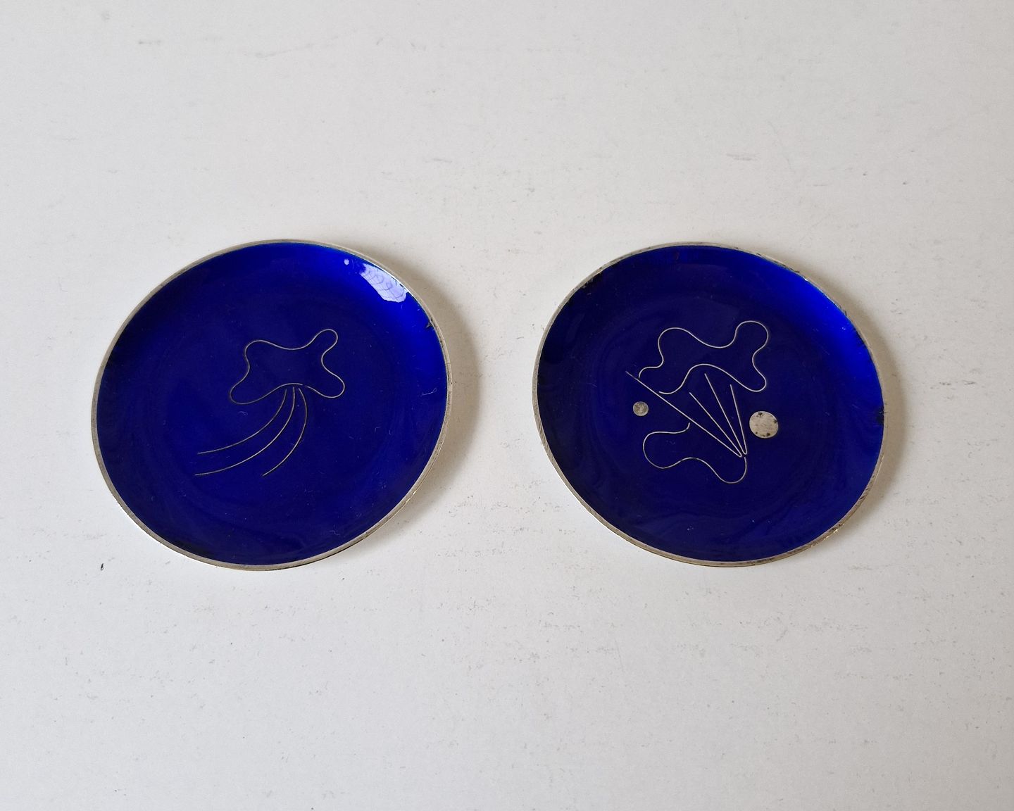 Frantz Hingelberg par glasbakker i sterlingsølv og blå emalje