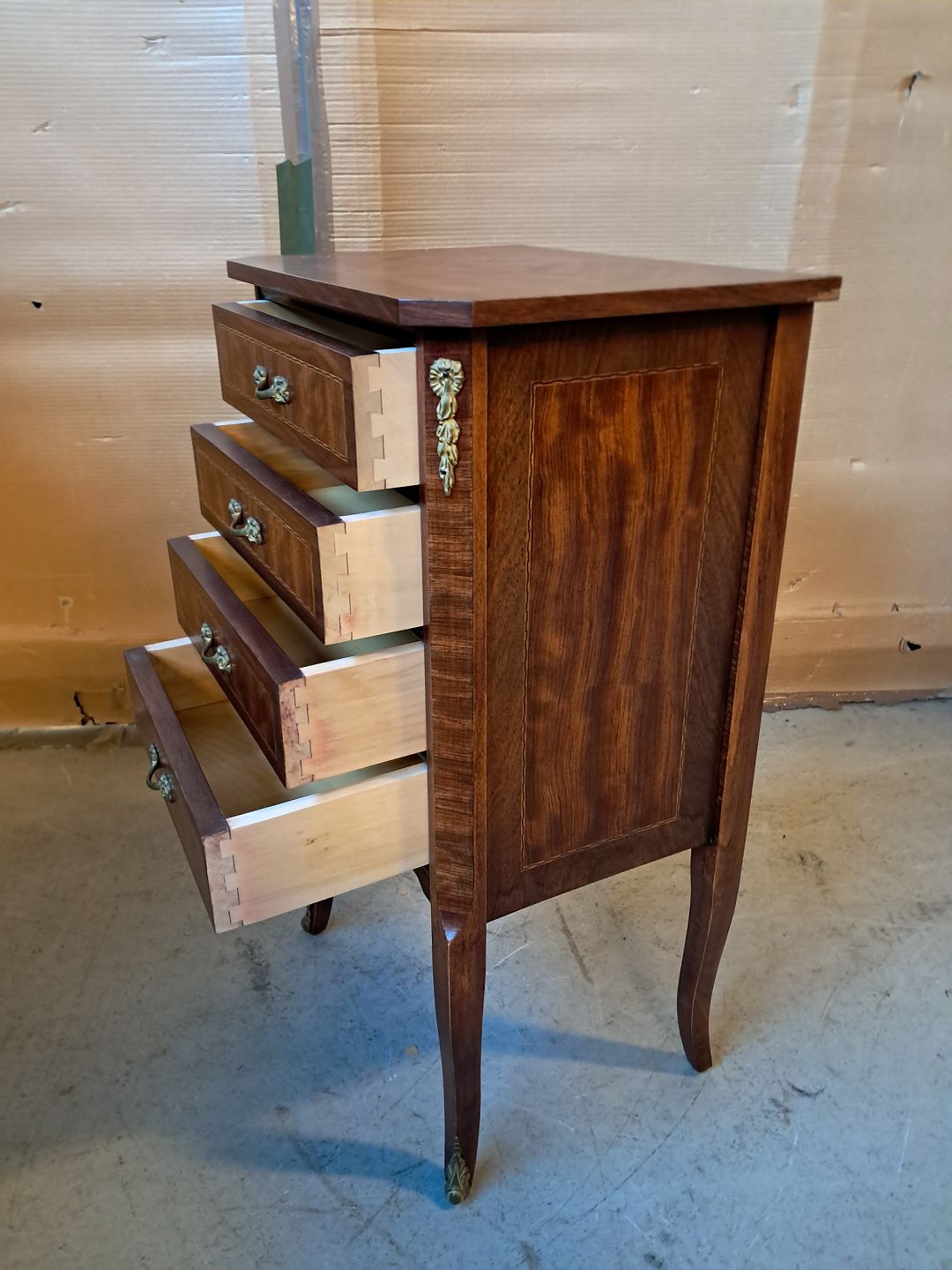 Pynte kommode i fineret mahogni, fra 1980erne.