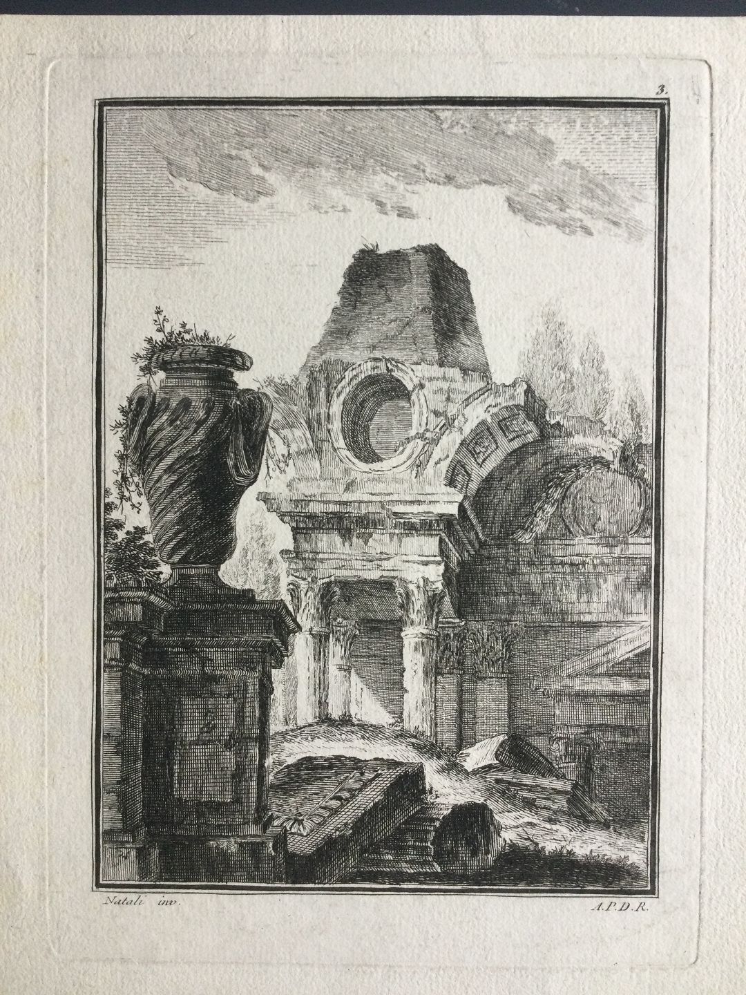 Kobberstik af Giovanni Battista Natali - Studie af antikke monomenter.