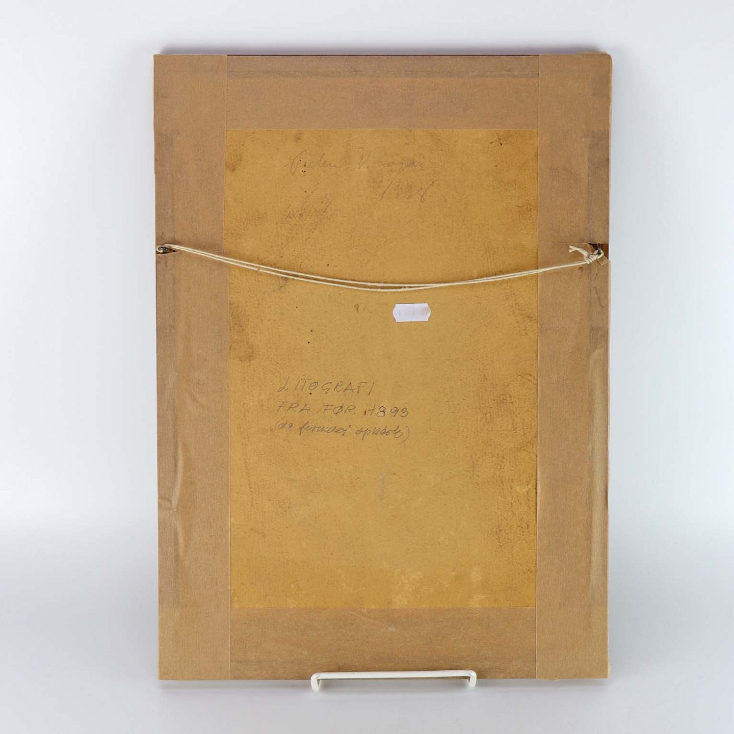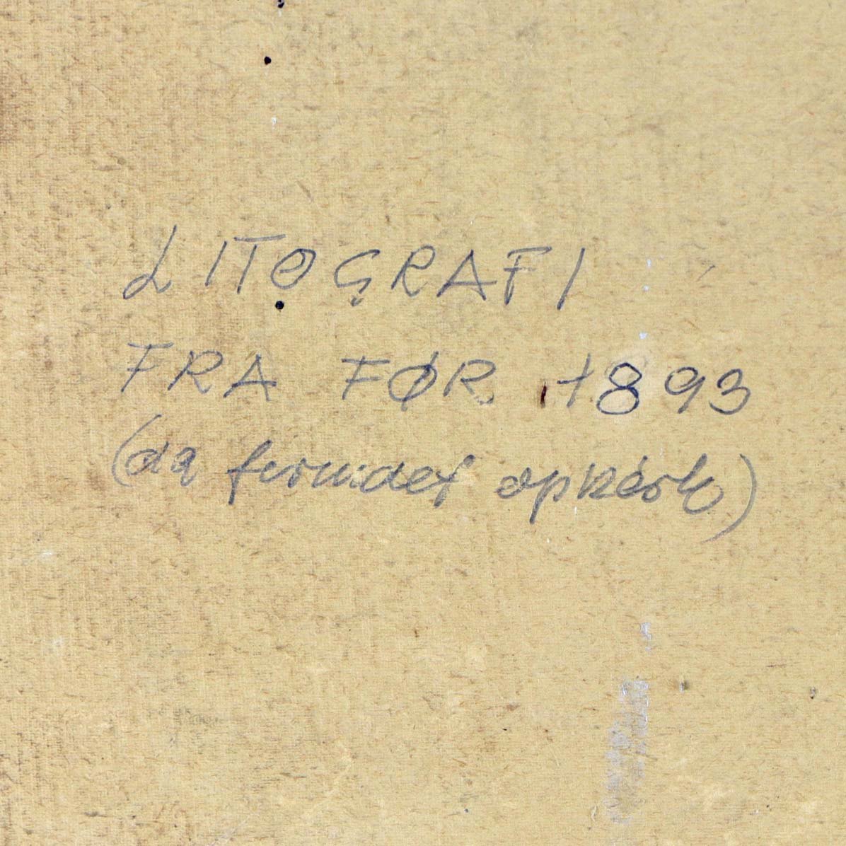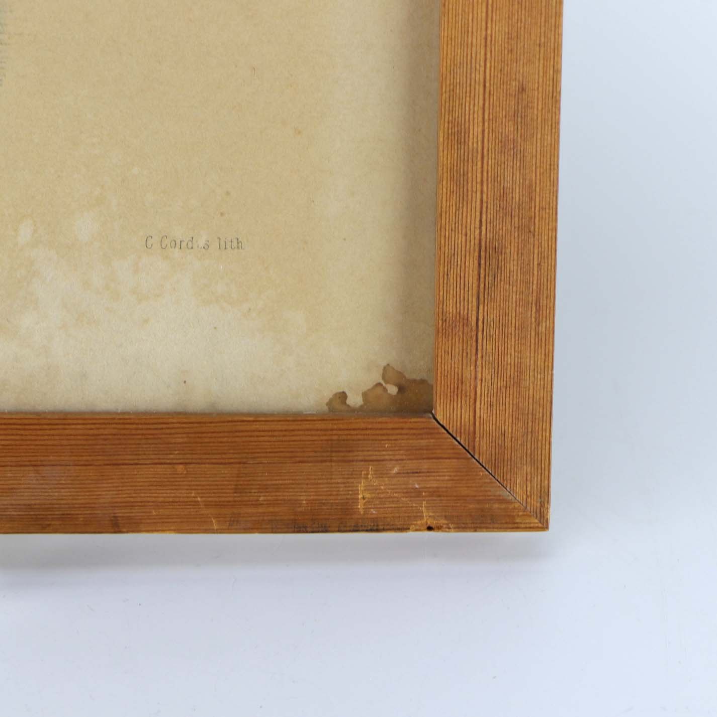 Indrammet antikt litografi i træramme med motiv af forskellige fuglearter. Litografiet er fra før år 1893