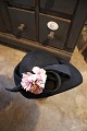 Gammel fransk vintage hat fra 40érne i sort filt med buket af stofblomster.