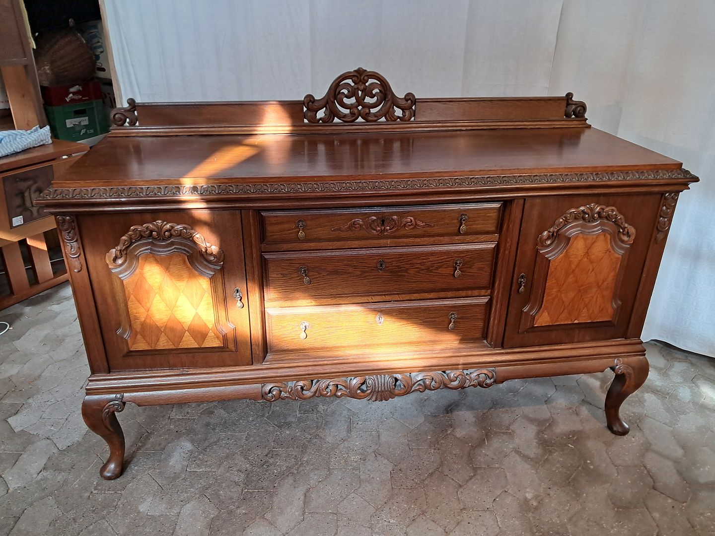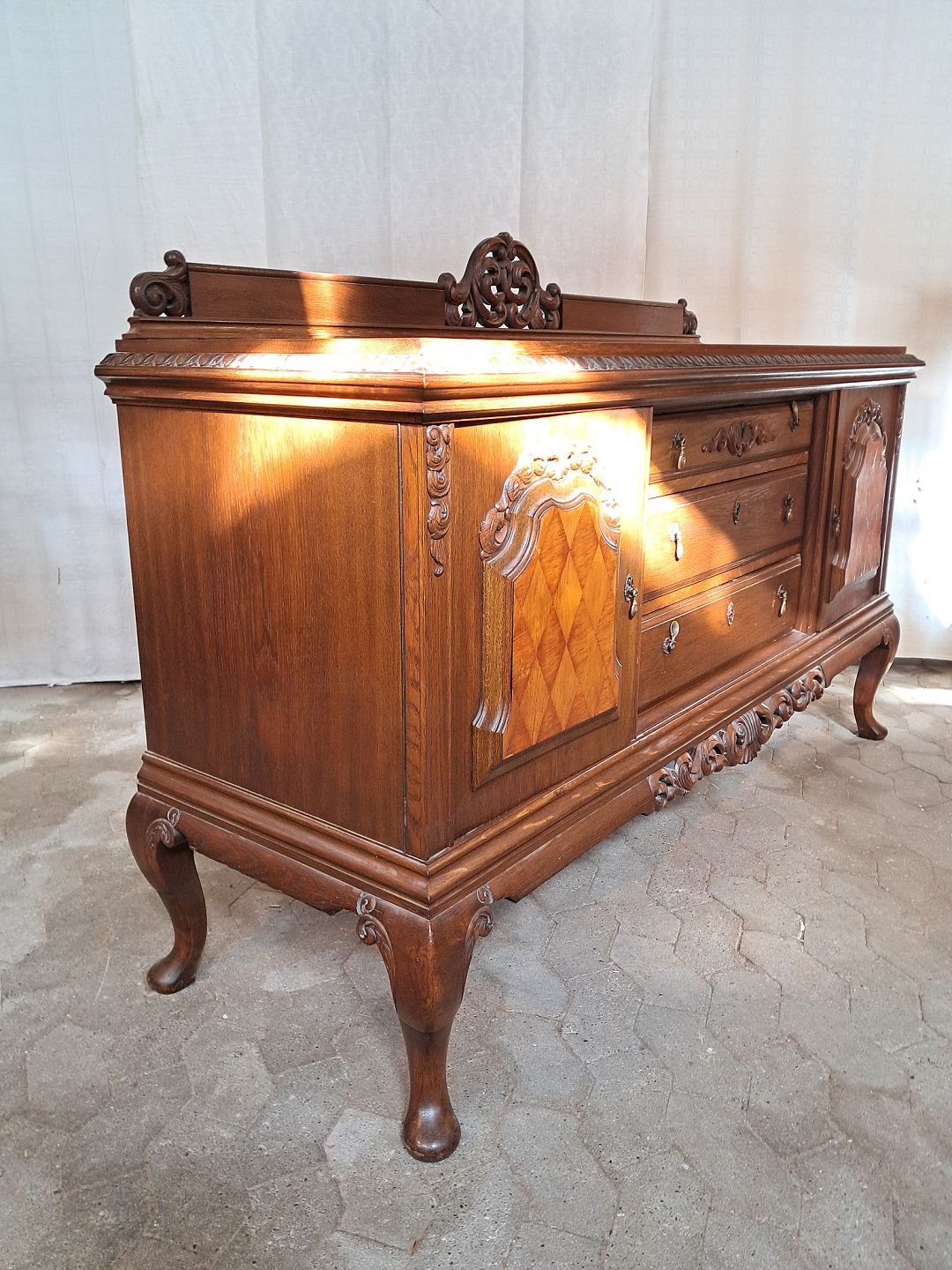 Skænk i massivt og fineret egetræ, fra 1920erne.