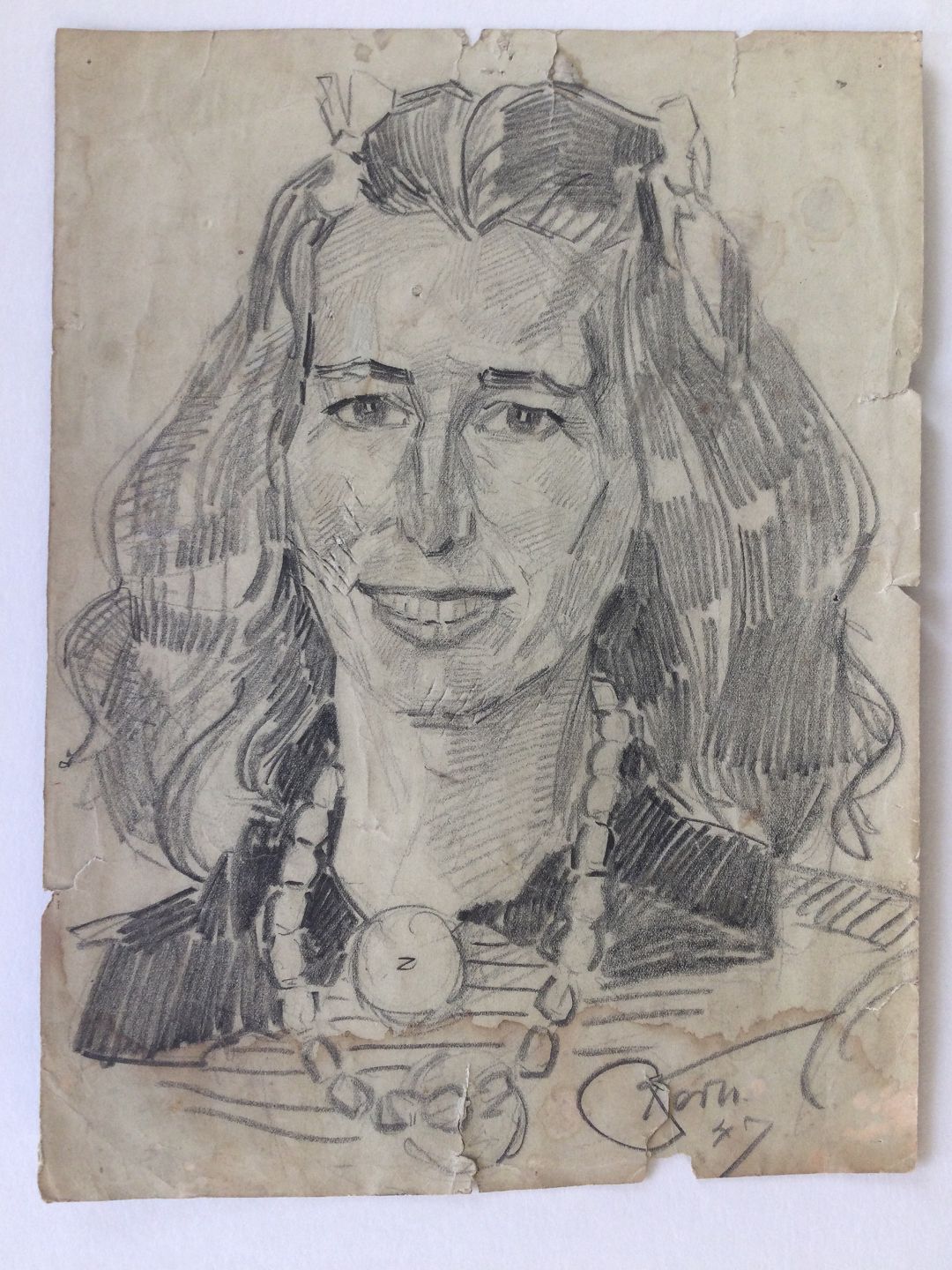 Tegning af Hans Jørgen Korn - Portræt af ung kvinde 1947.