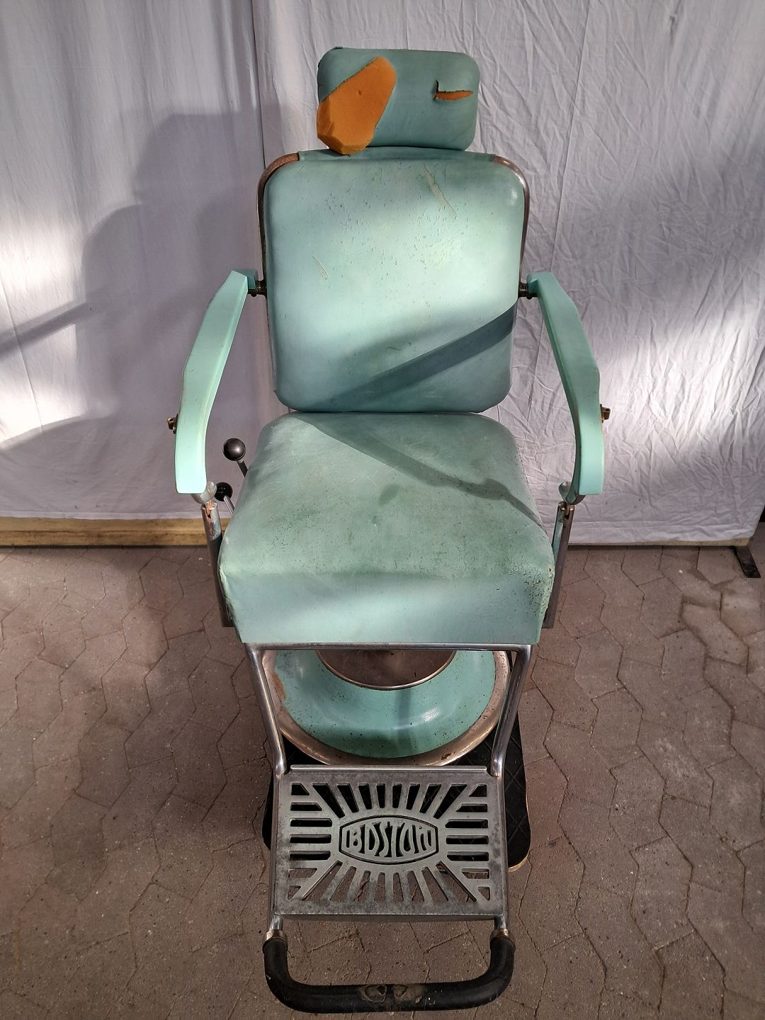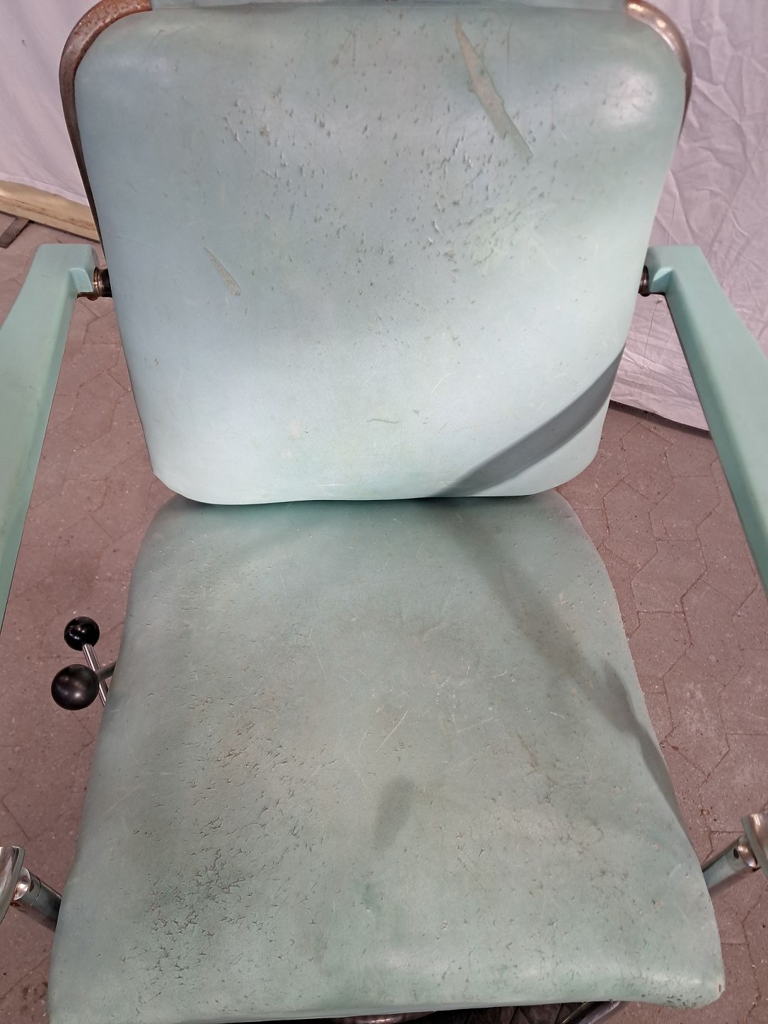 Den har brugsspor, defekt polstring og mangler nakkestøtte-skruen,