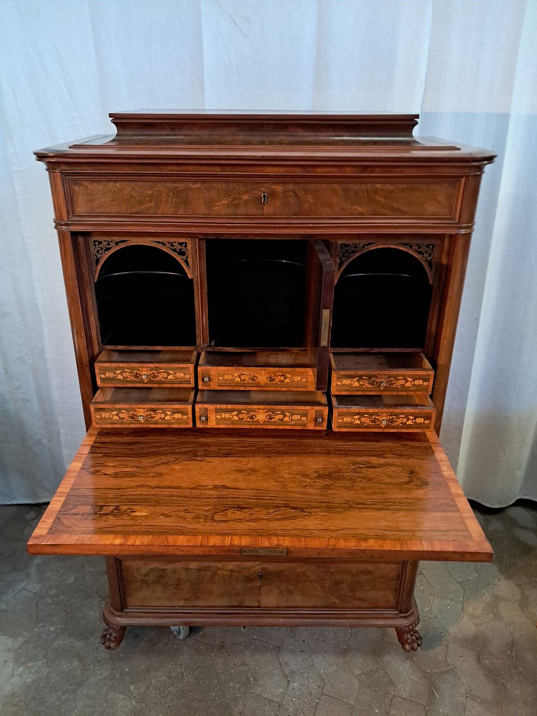 Den har brugsspor, løst bagben og mangler en hjørneliste.