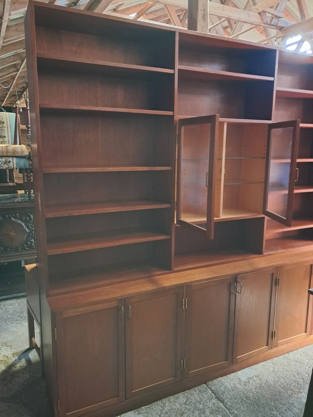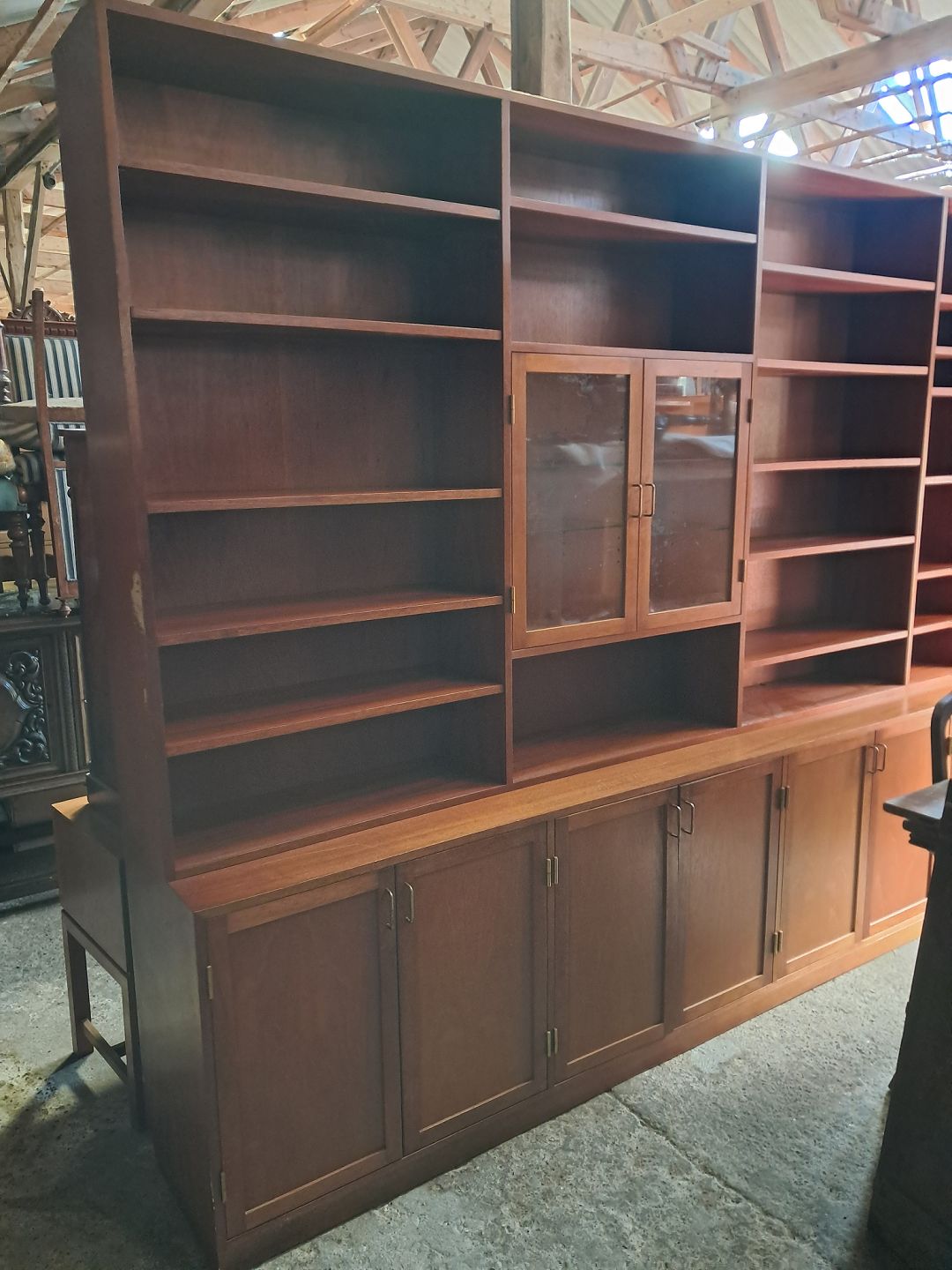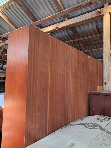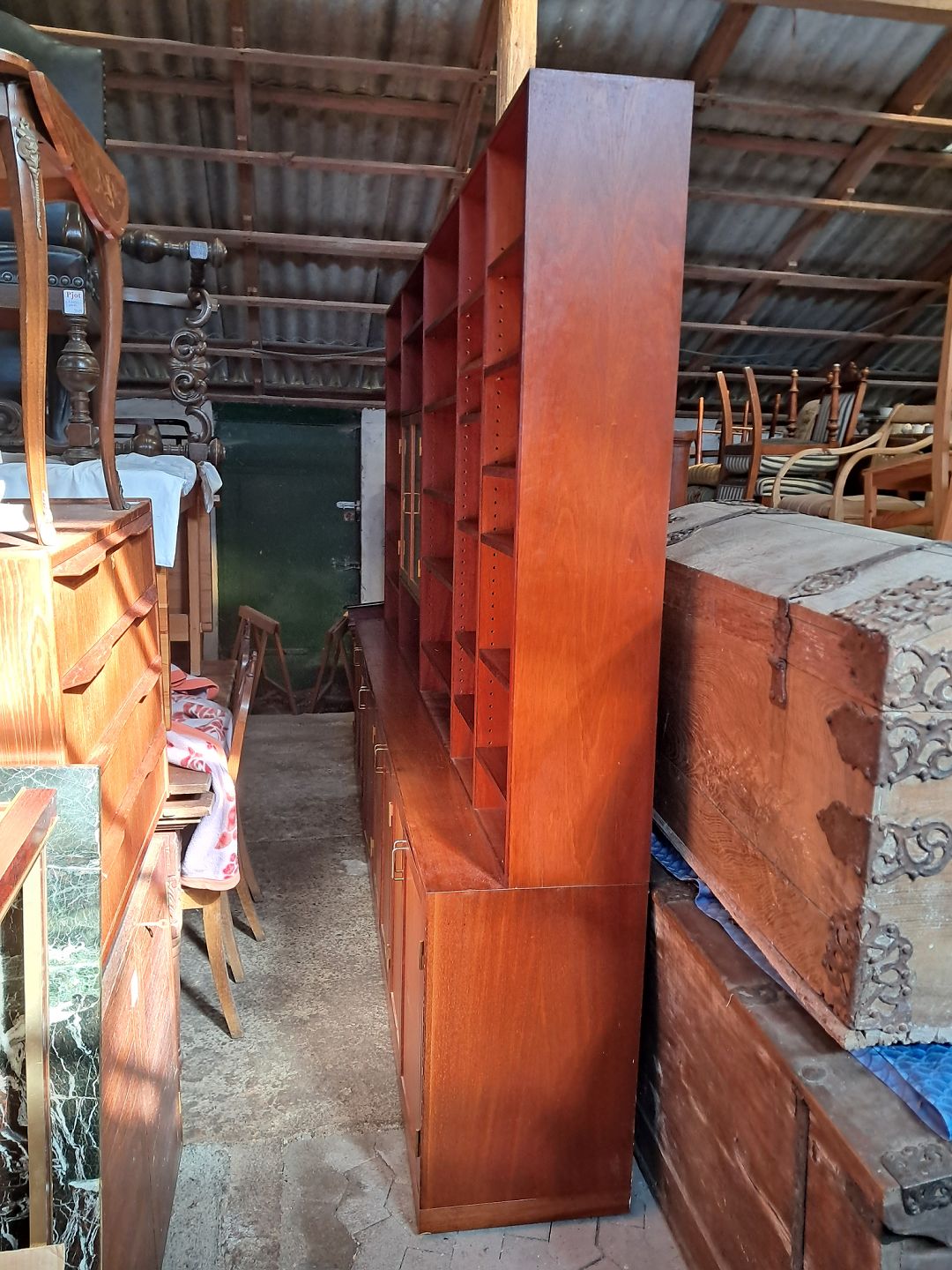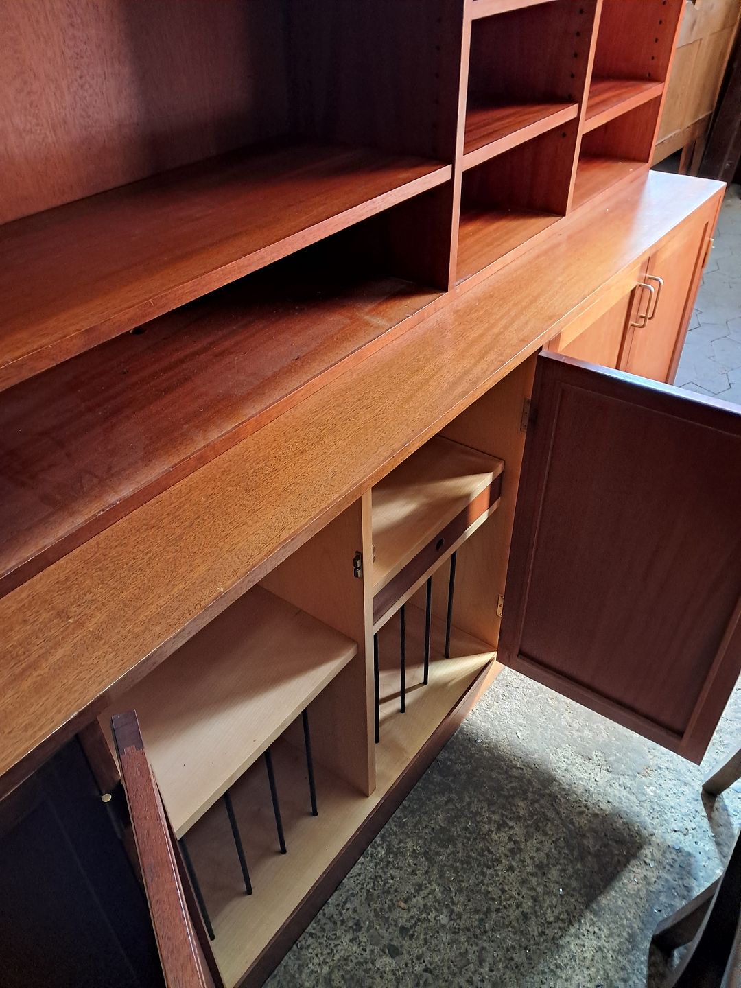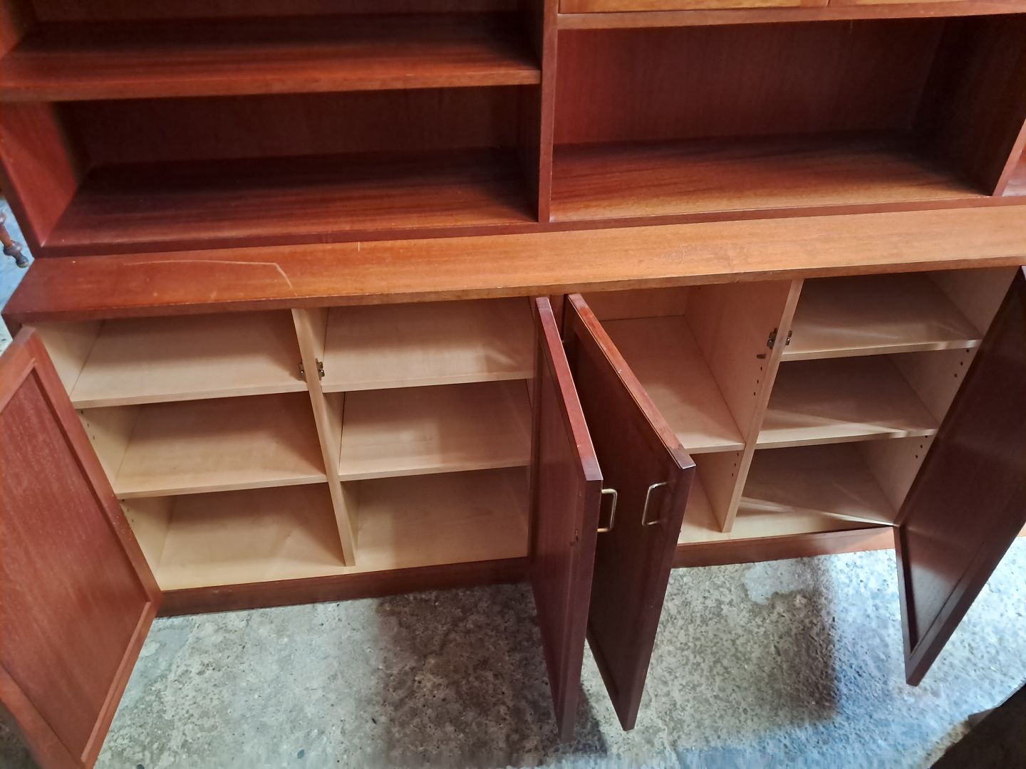 Stor 2-delt reolsektion i fineret mahogni, fra 1950erne.