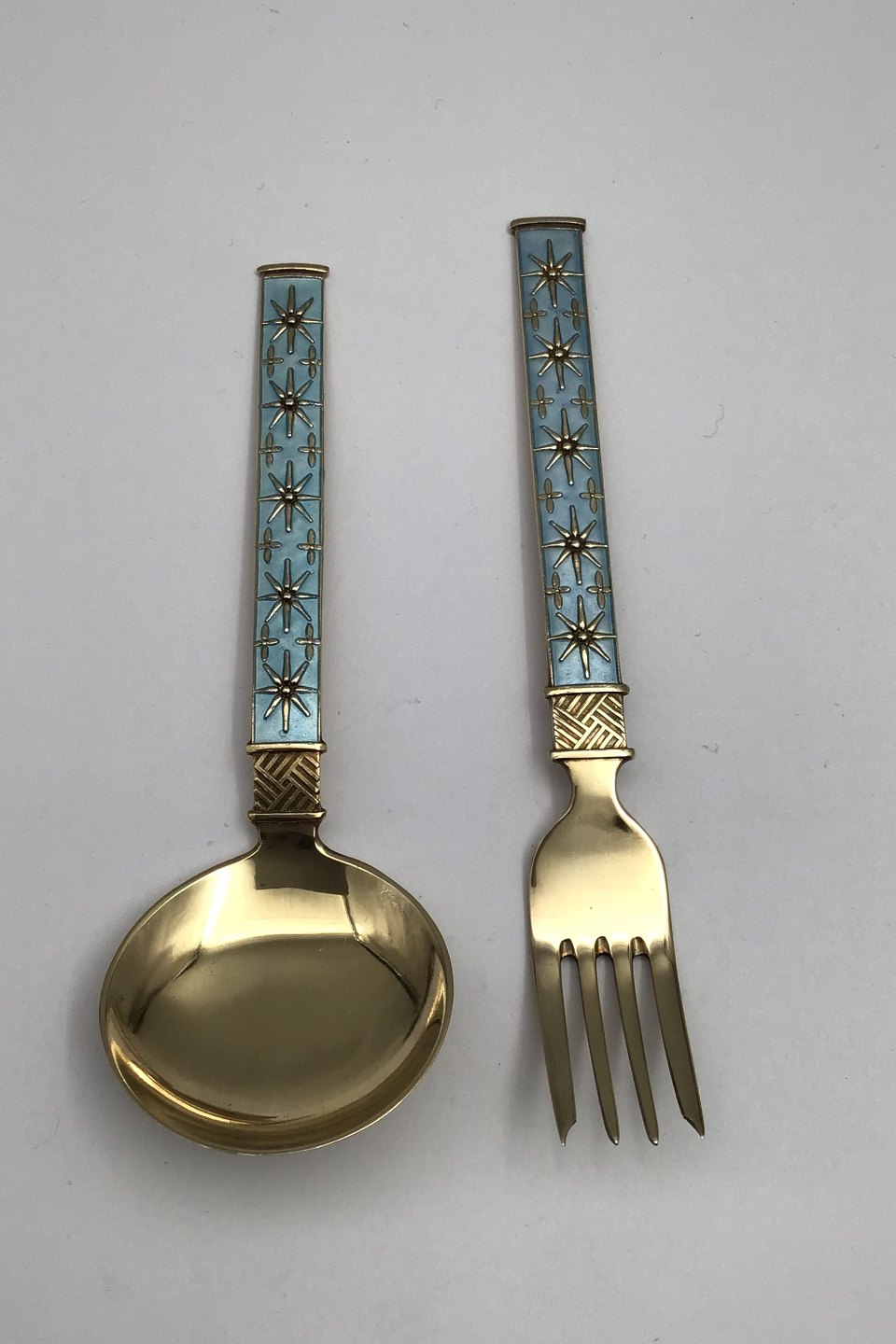 J. Tostrup, Norge Sterling Sølv og Emalje Barnebestiksæt (Forgyldt)