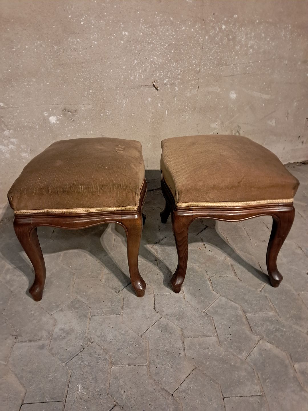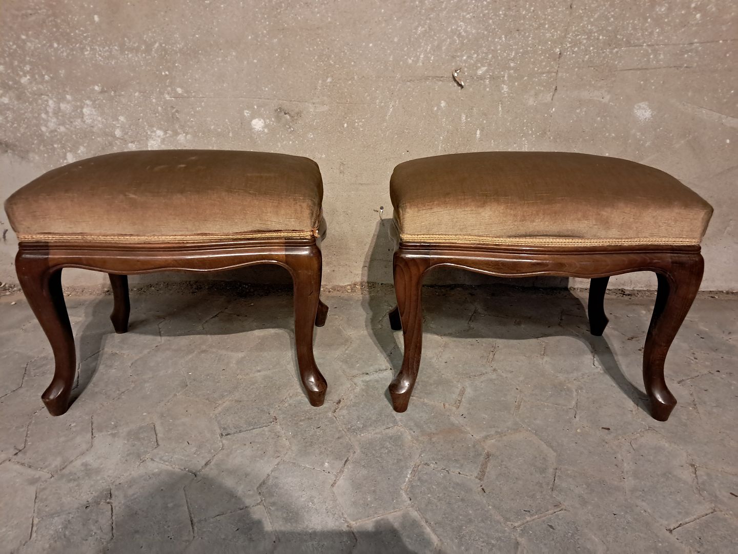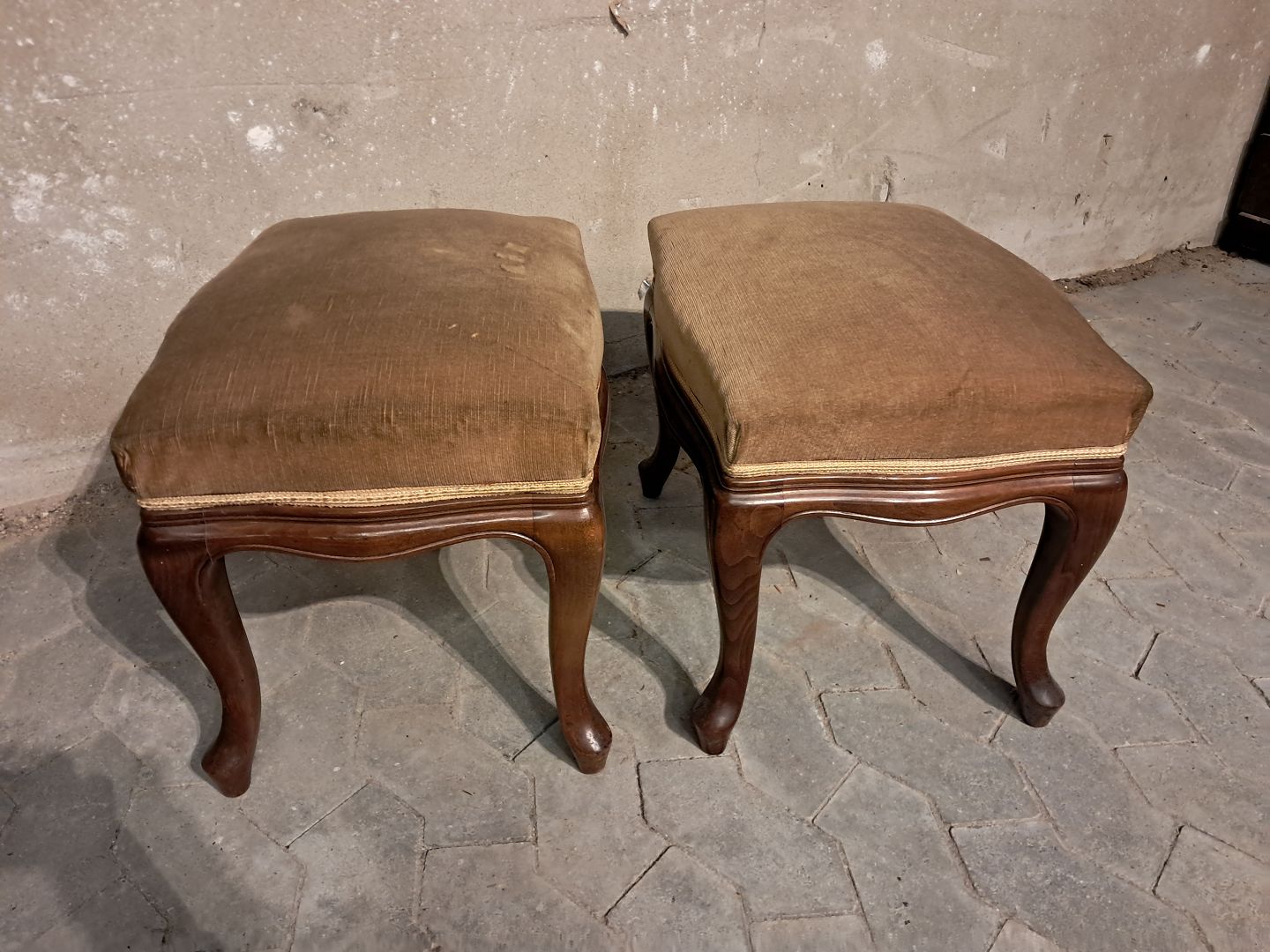 2 Rokokoskamler i bøgetræ med velourbetræk, fra 1980erne.