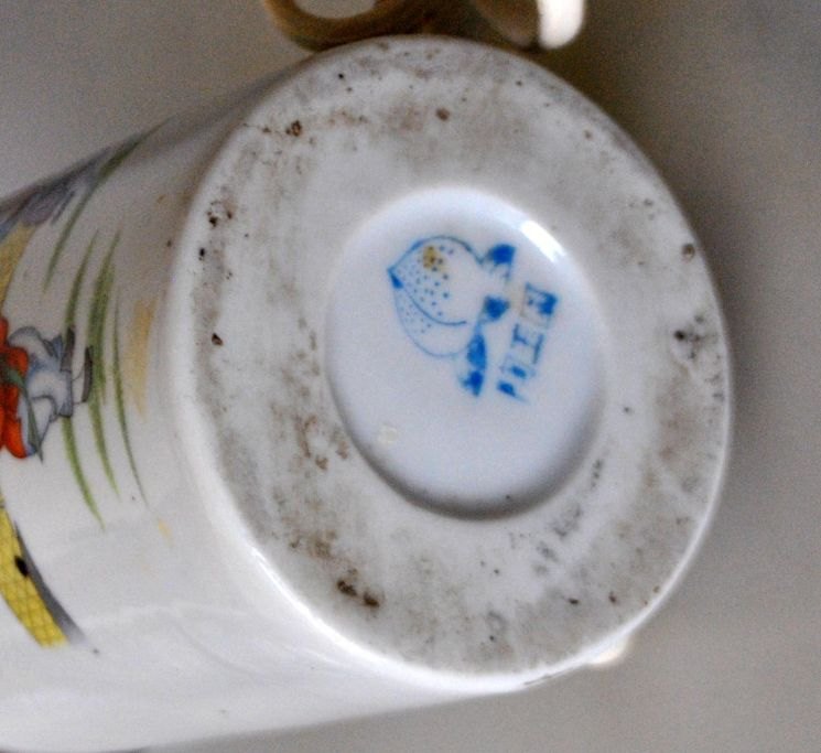 Kinesisk pensel bæger i porcelæn omgjort til lampe, 20. årh. Dekoreret med kvinder og børn i have. Polykrom transfer bemaling. Stemplet. H: 20 cm. Dia: 7 cm.