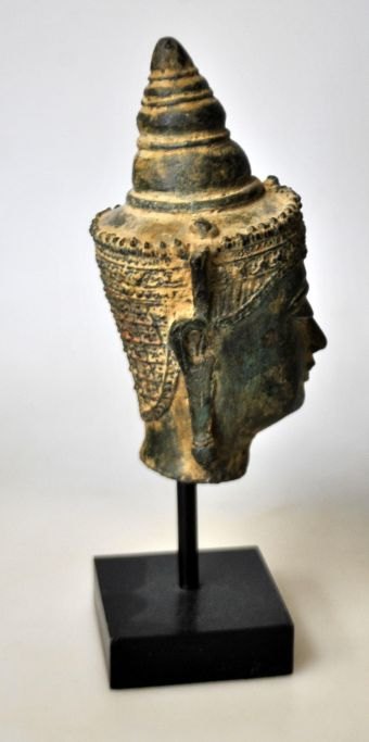 Buddha buste i bronze, 20. årh. På træfod. H.: 13 cm. På fod: 19 cm.