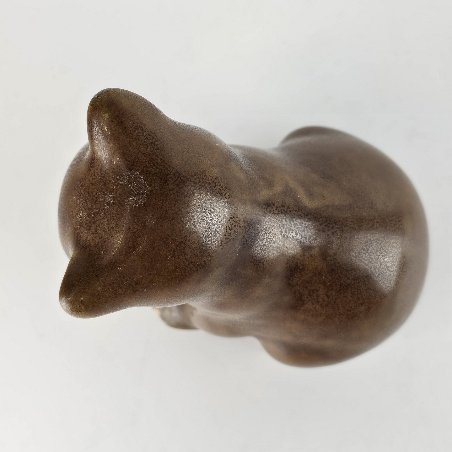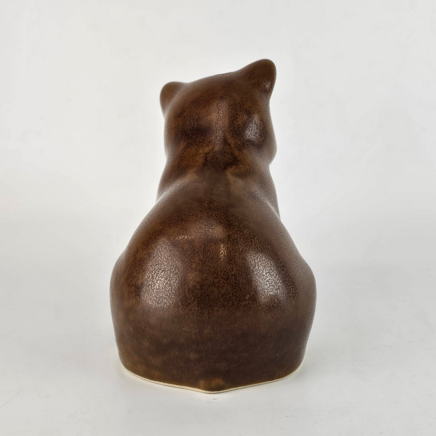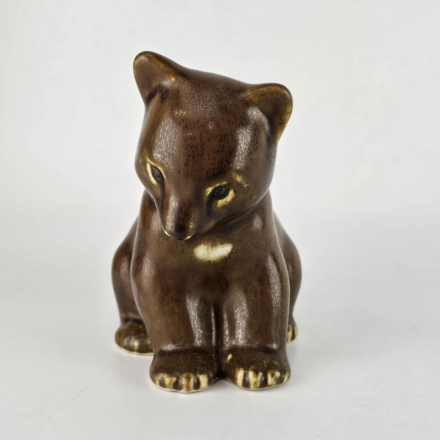 Figur i stentøj med motiv af en brun bjørneunge med hvid blis.