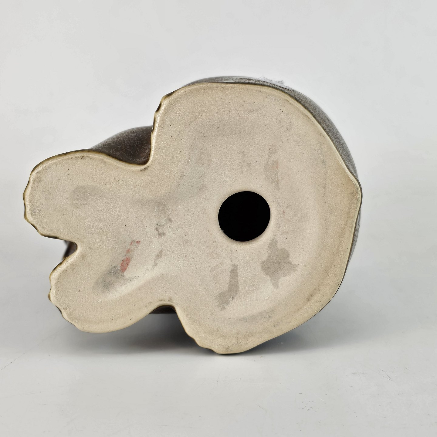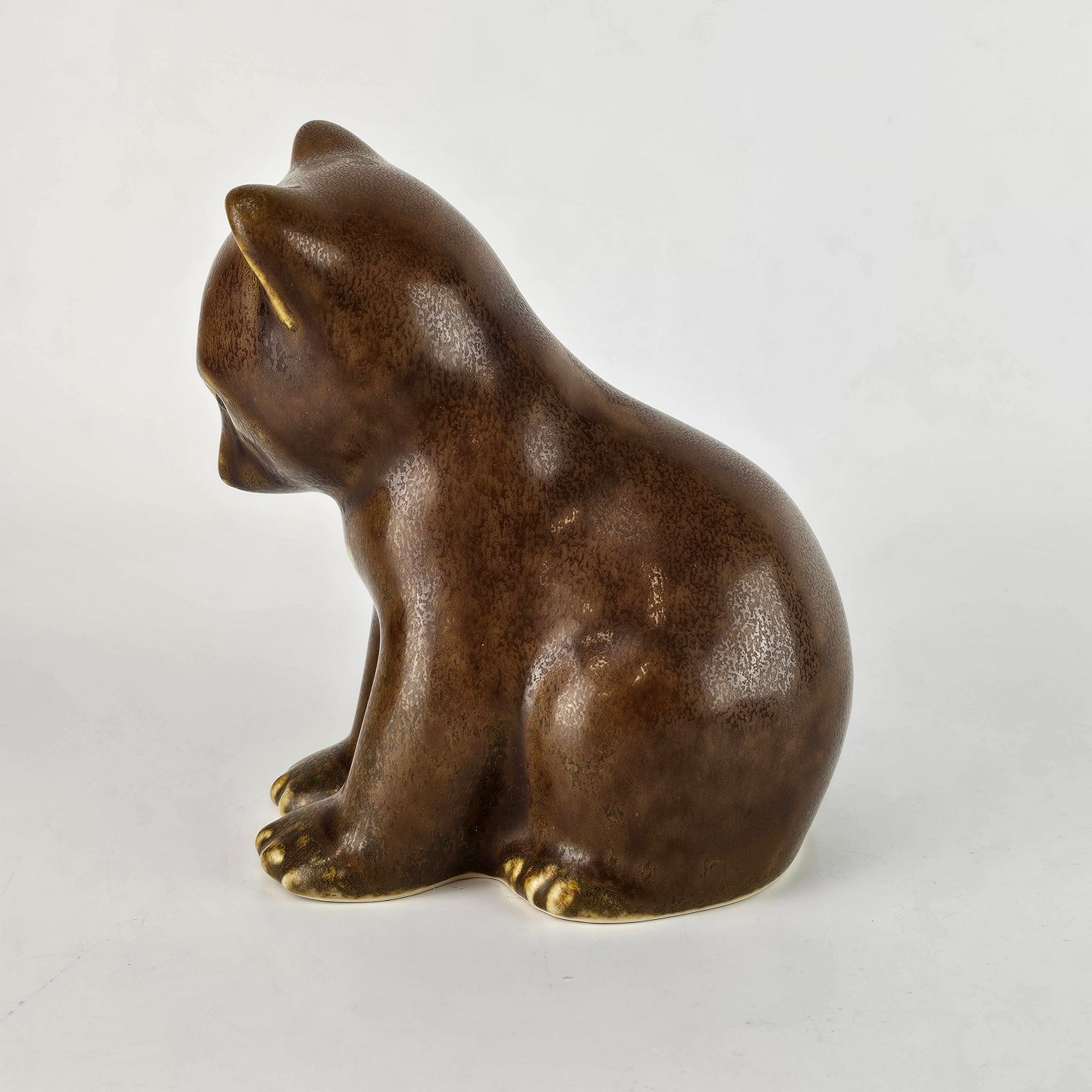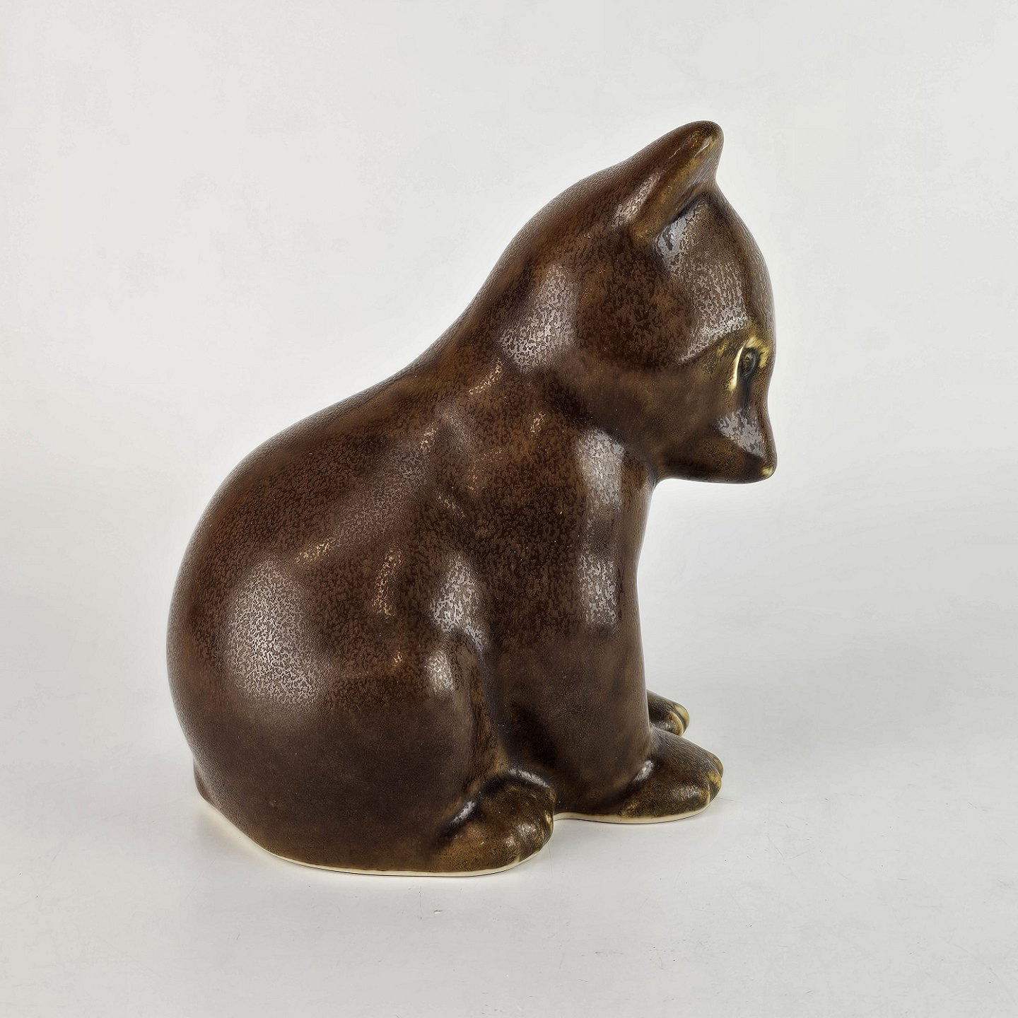Figur i stentøj med motiv af en brun bjørneunge med hvid blis.