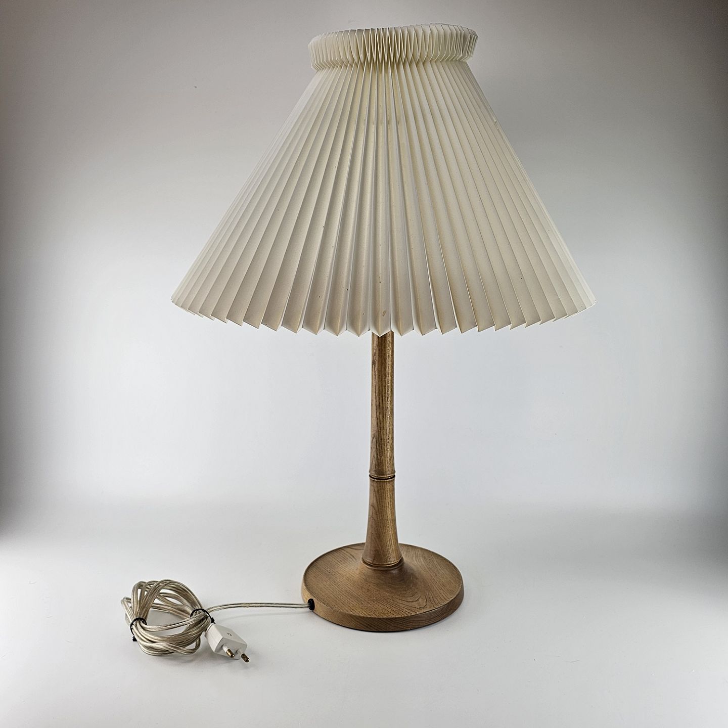 Bordlampe af ask med hvid plisseret Le Klint skærm