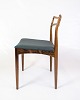 Træværket fremstår i rigtig pæn stand med flot patina, mens stoffet på sæderne har synligt slid. Vi tilbyder professionel ompolstring i valgfrit tekstil eller læder mod merbetaling af 1000kr pr stol, så stolene kan tilpasses din ønskede stil og indretning.
