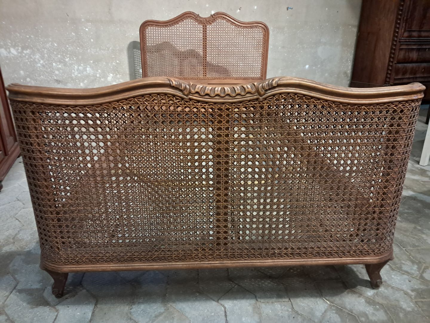 Seng i massivt bøgetræ med rørflet, fra 1950erne.