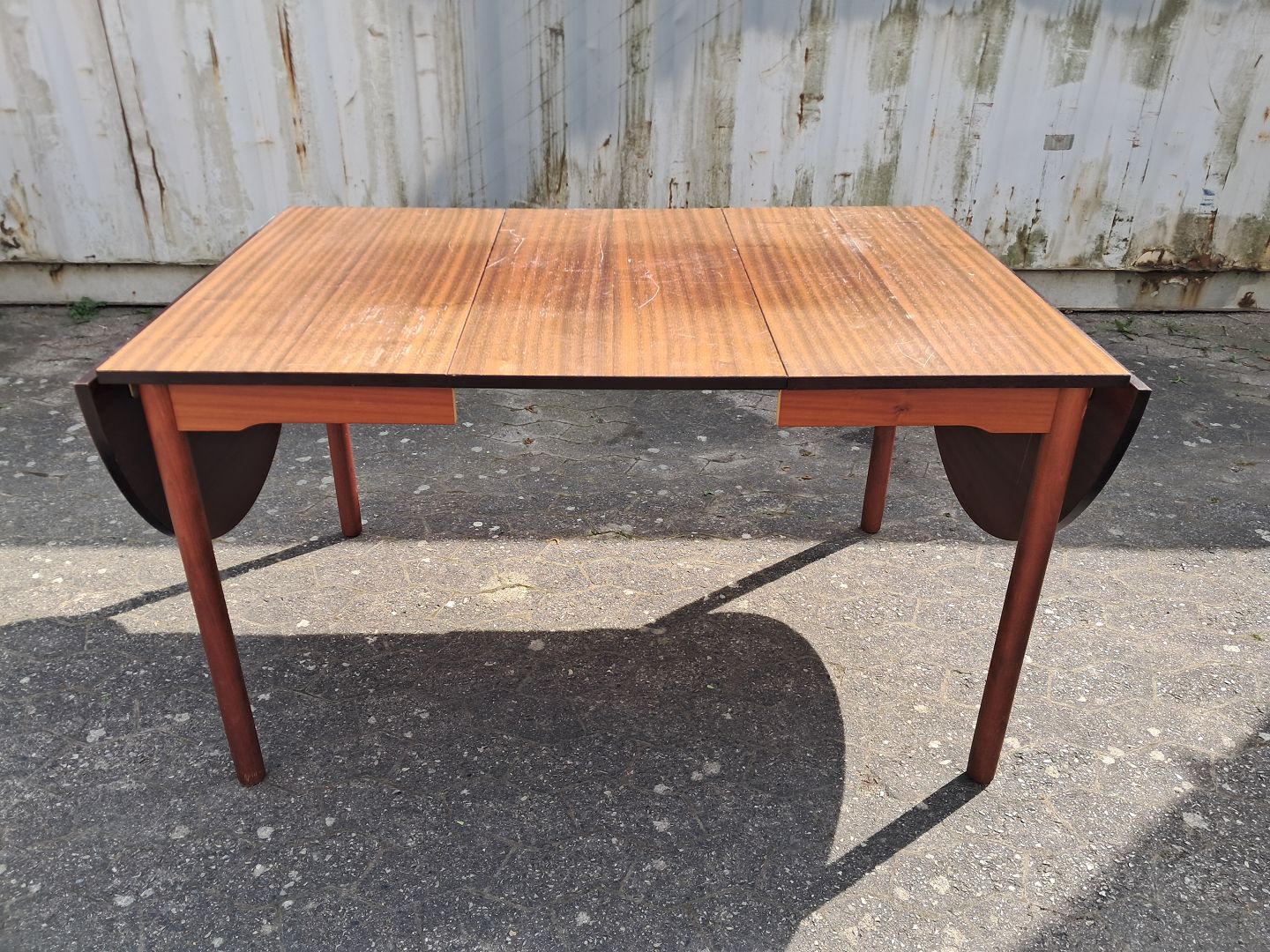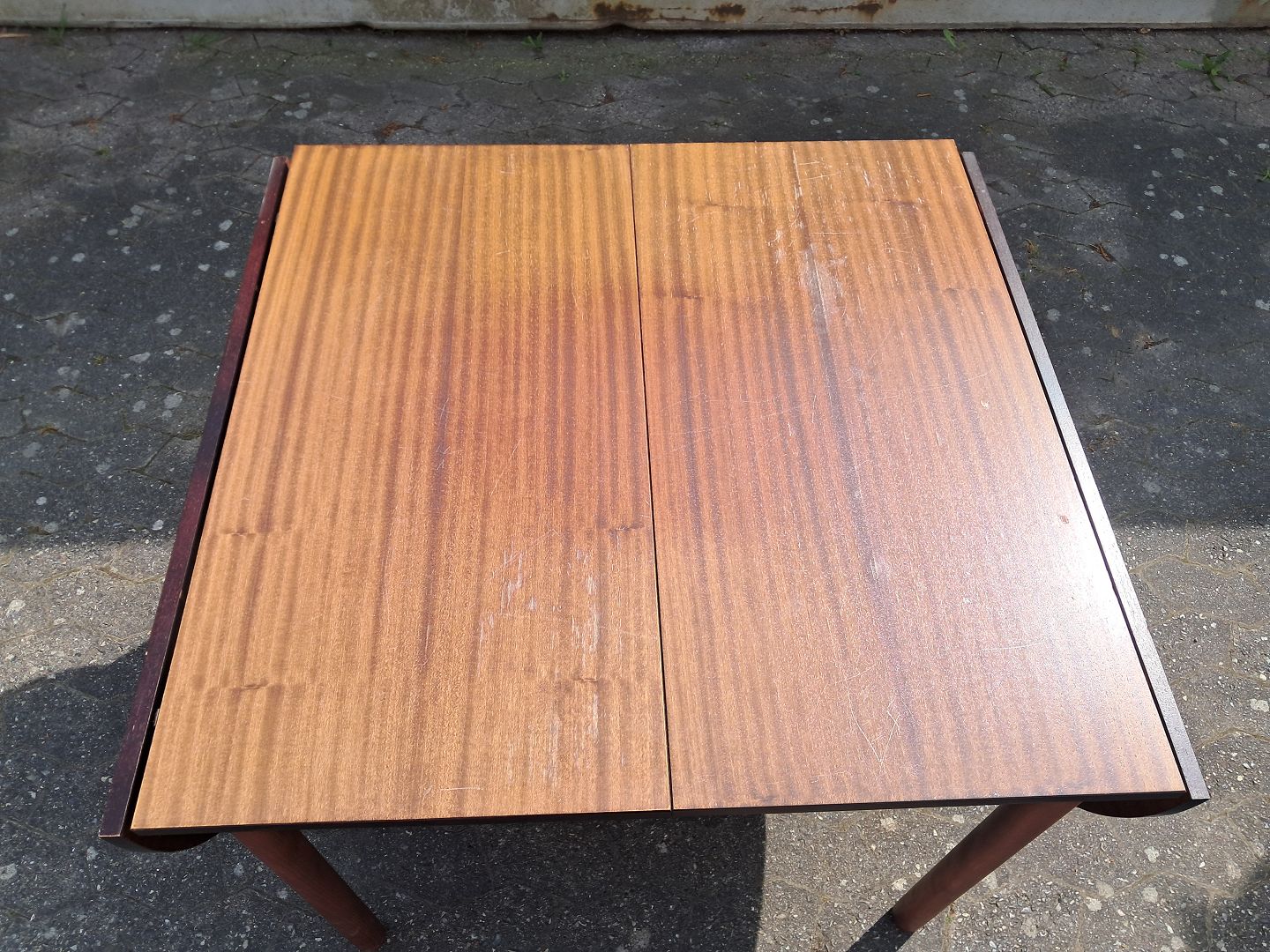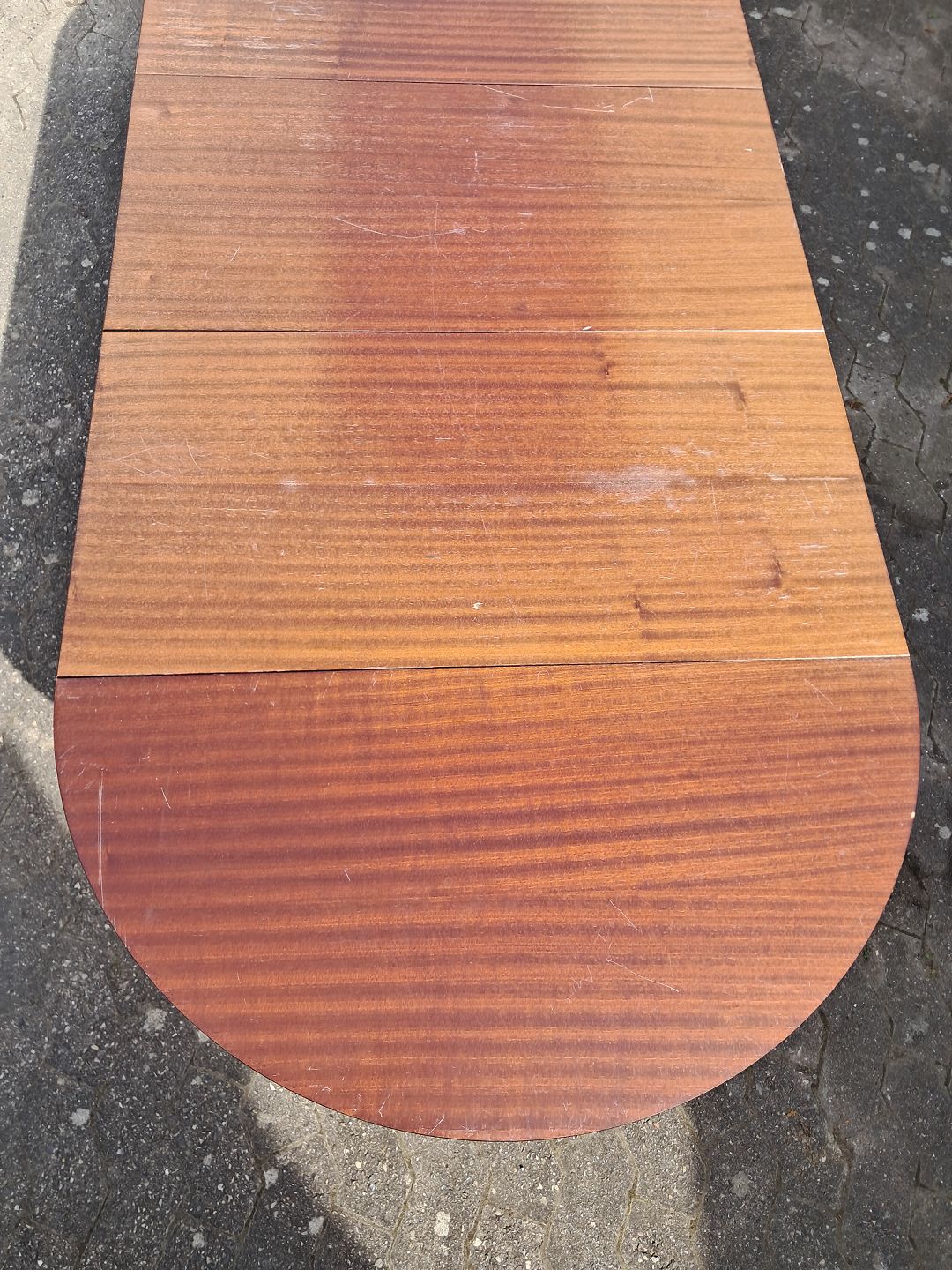 Bord i fineret mahogni med 2 klapper og 1 tillægsplade, fra 19890erne.