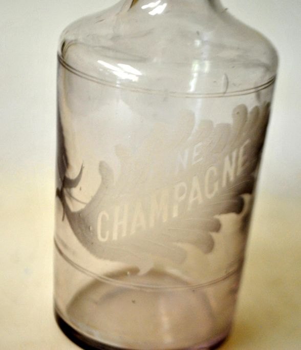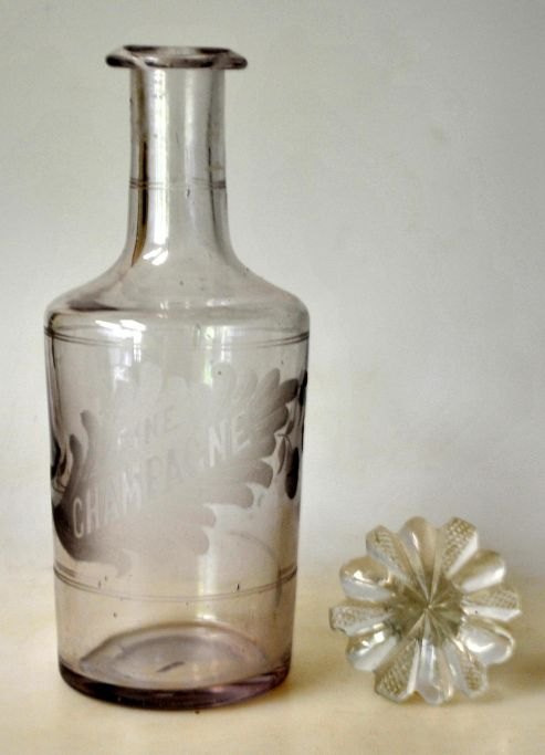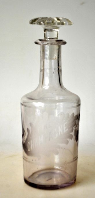 Karaffel "Fine Champagne", ca. 1900. England. Med slbet motiv af egeblad med agern. H.: 19 cm.