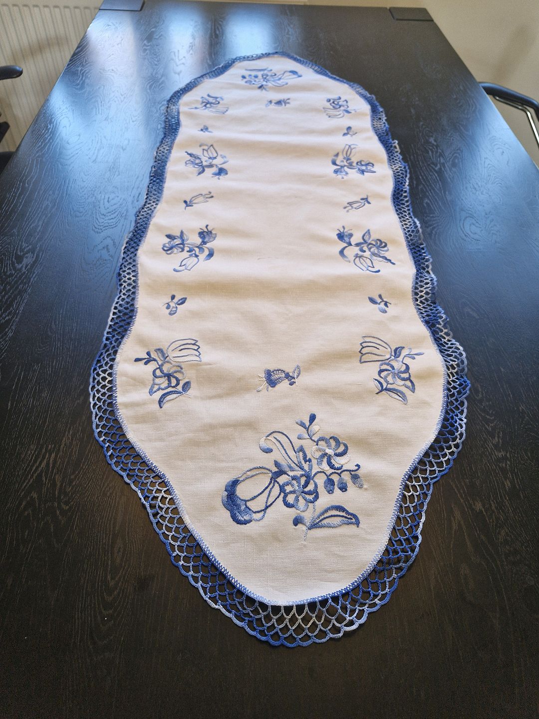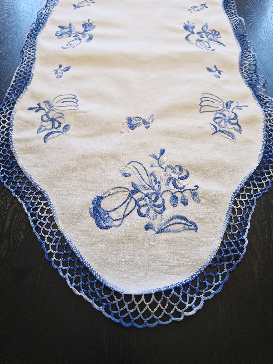 Bordløber smukt broderet med blå blomster