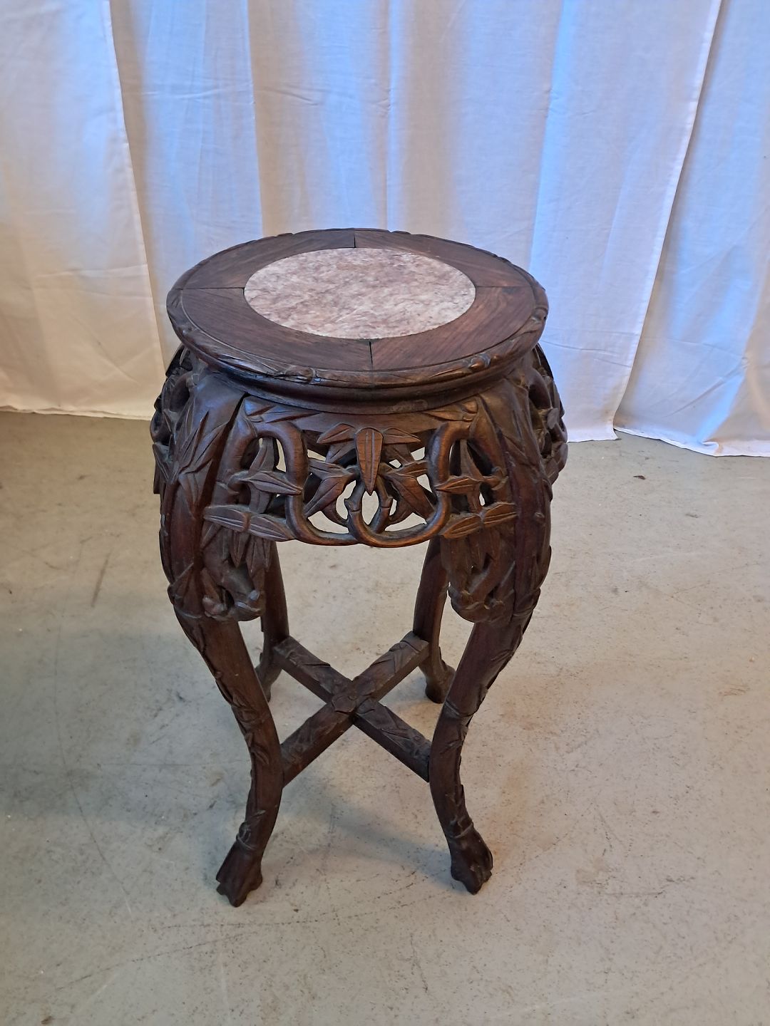 Asiatisk sidebord i massivt træ med marmorplade, fra 1980erne.