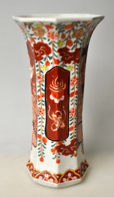Otte kantet porcelæns imari vase, 19. årh. Japan.
