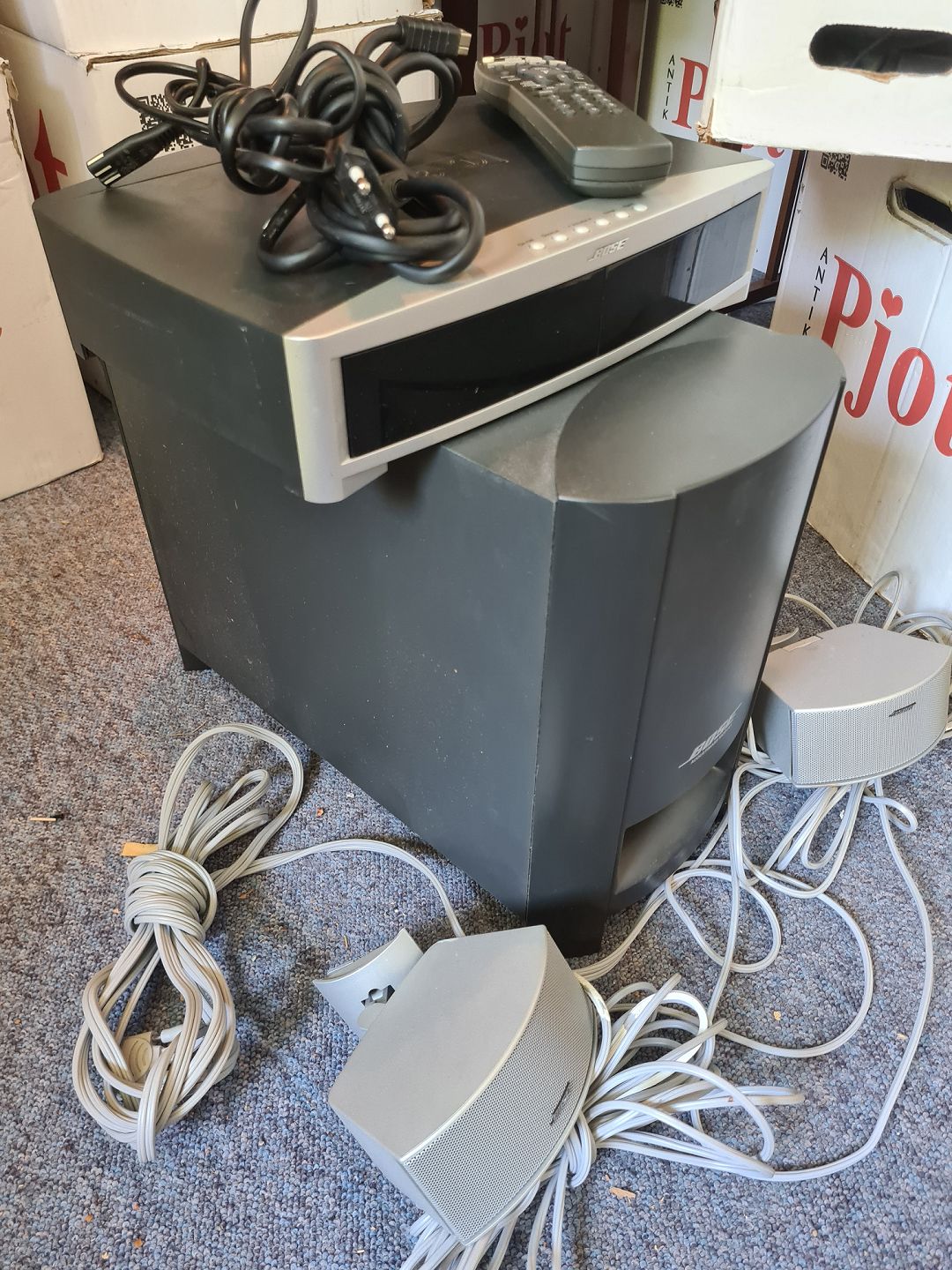 BOSE media center model AV3-2-1II med fjernbetjening, brugermanual og tilhørende højtaler sæt. Testet og virker.