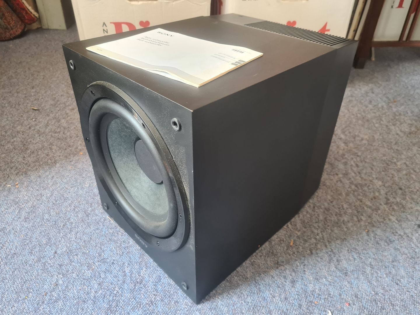 Aktiv supwoofer fra SONY model SA-CS9 i sort. Testet og virker. Fremstår uden nævneværdige brugsspor.