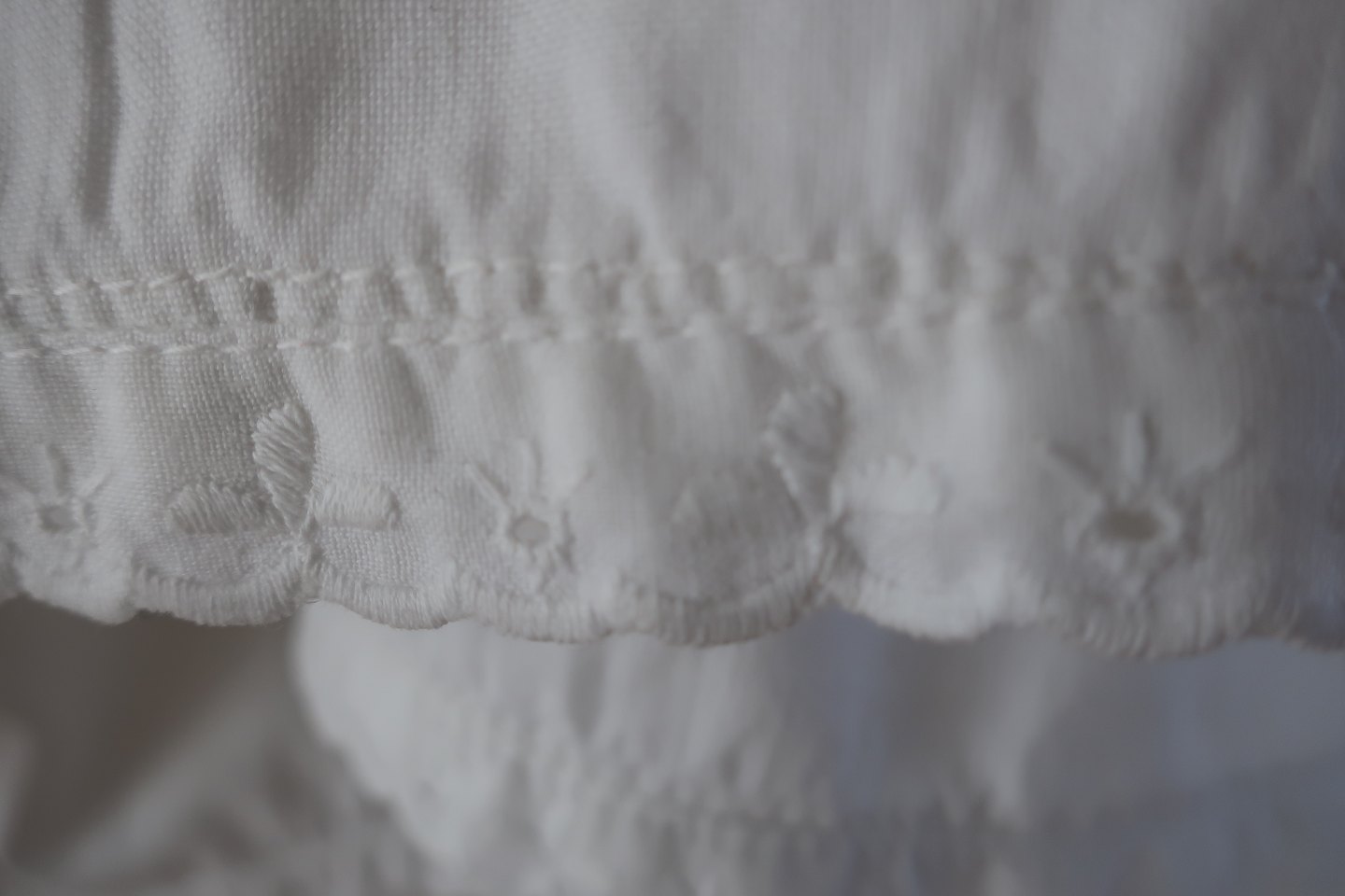 The antique, Danish linen and fustian is our speciality and we always have a large choice of shifts, babydress, tea towels, table clothes, napkin etc.