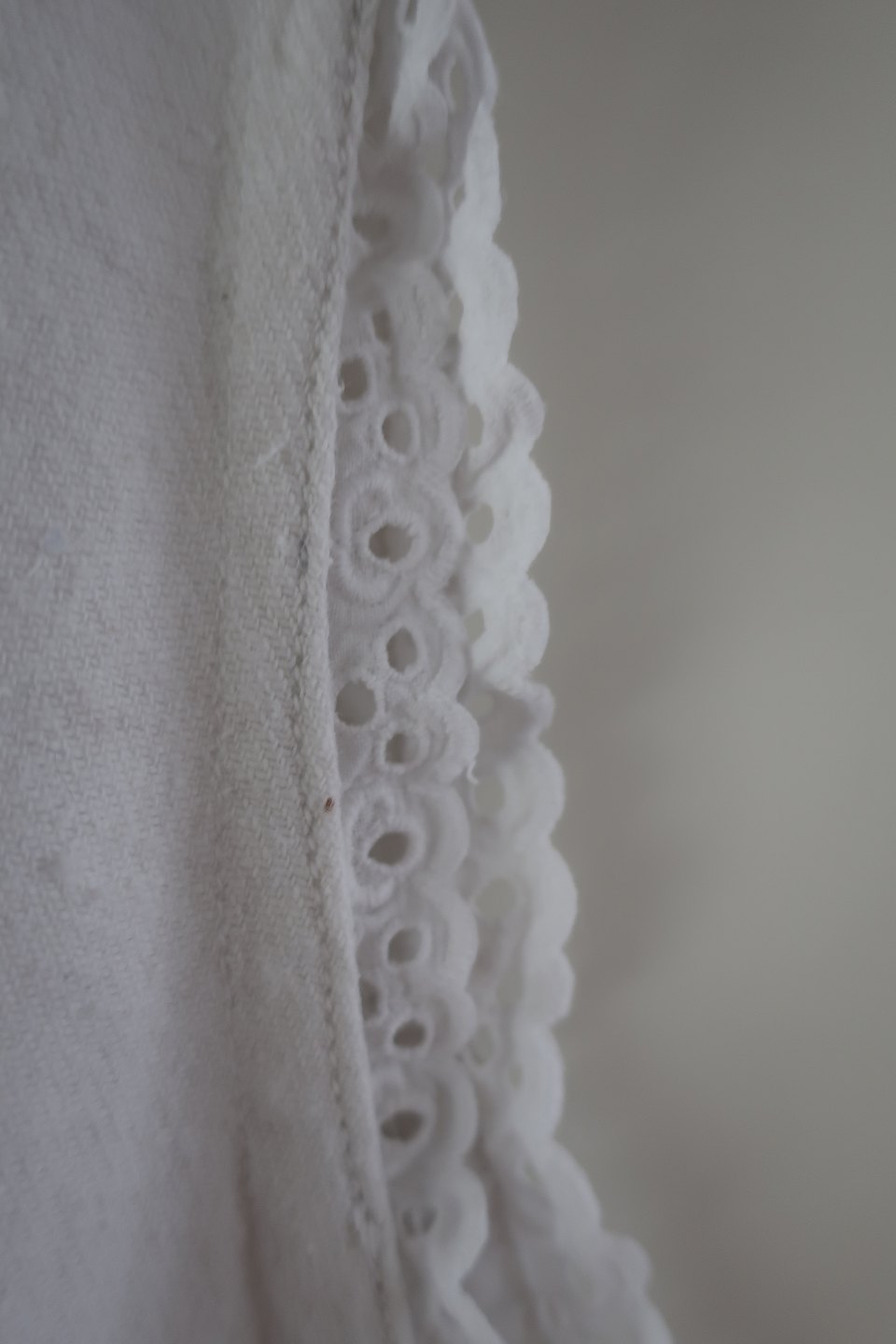 An antique shift with hand made buttonholes and embroidered hand-made initials