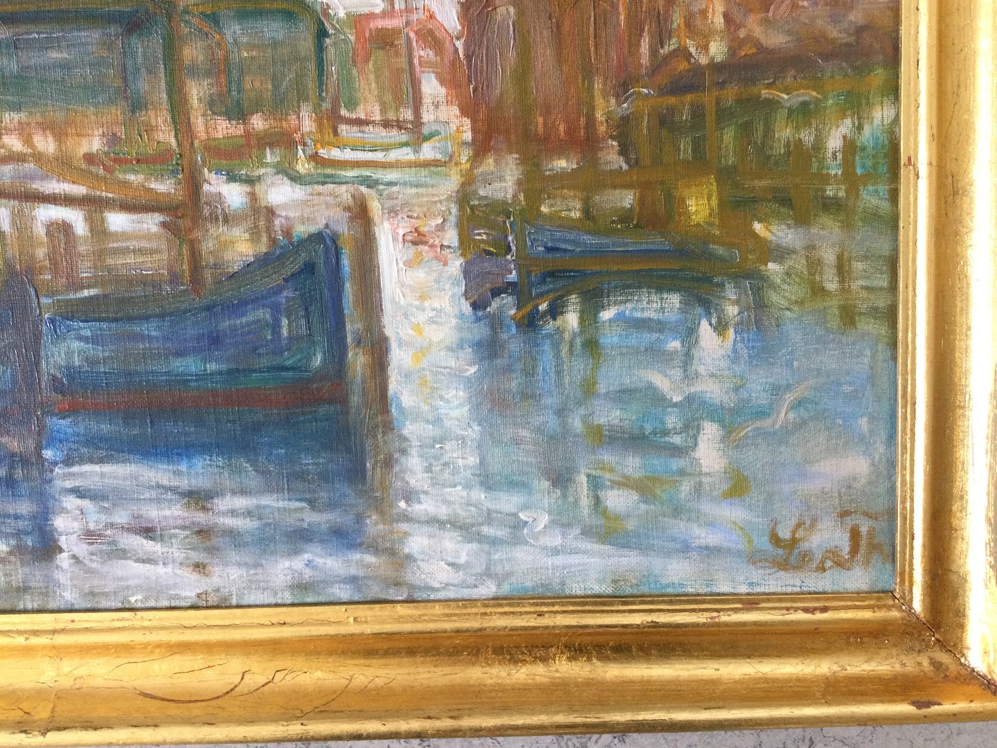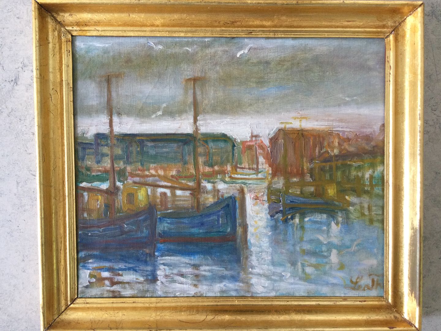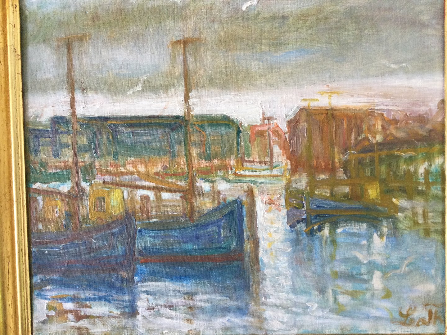 Maleri af Leo Thellefsen - Havneparti - Antagelig Esbjerg havn.