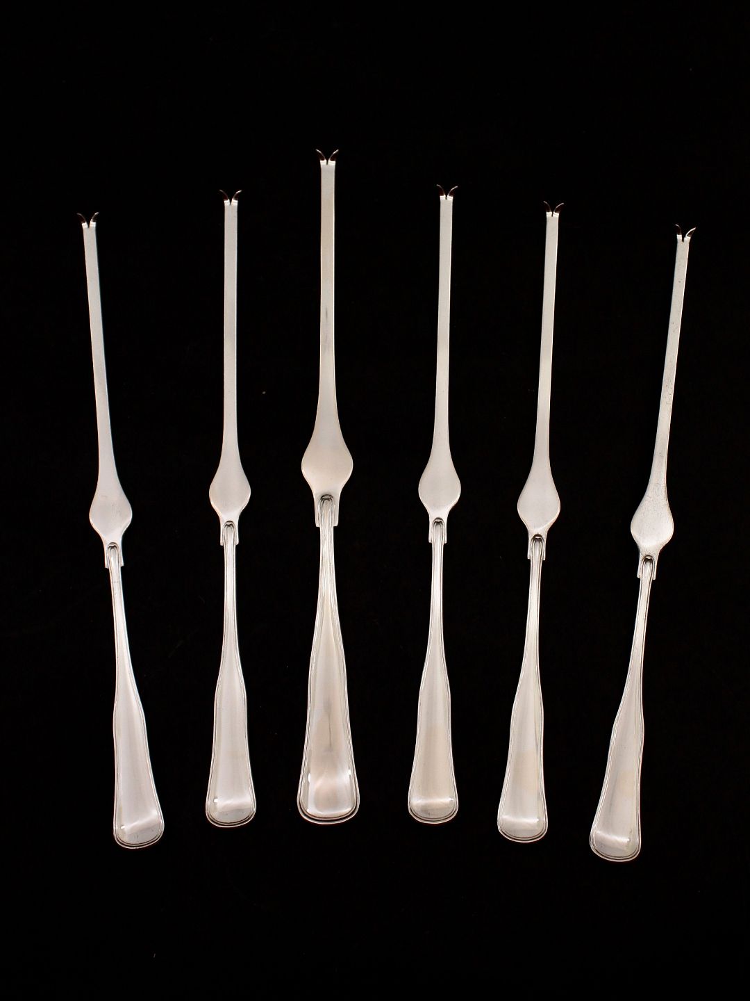Dobbeltriflet hummer gafler sæt på 6 en større end de andre tretårnet sølv emne nr. 611762