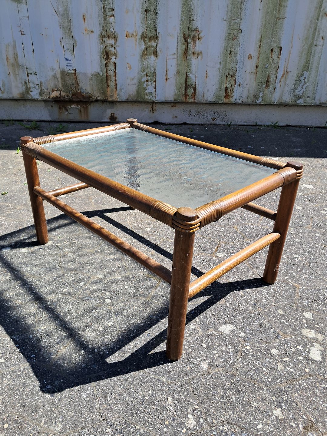 Lille bord i bambus med frostetglas, fra 1990erne.